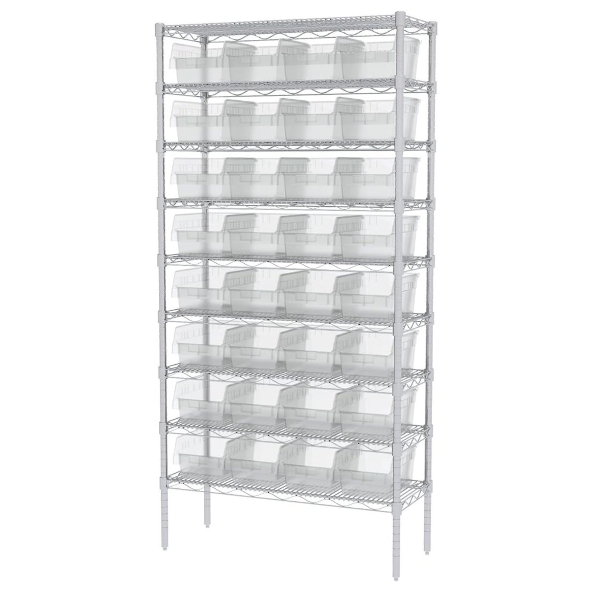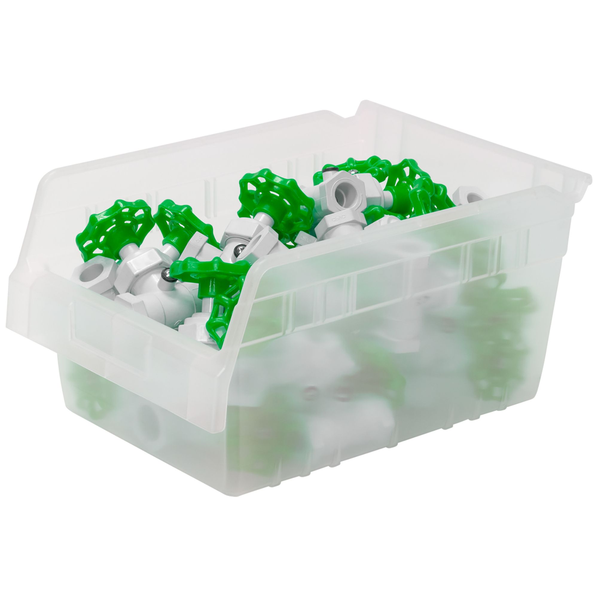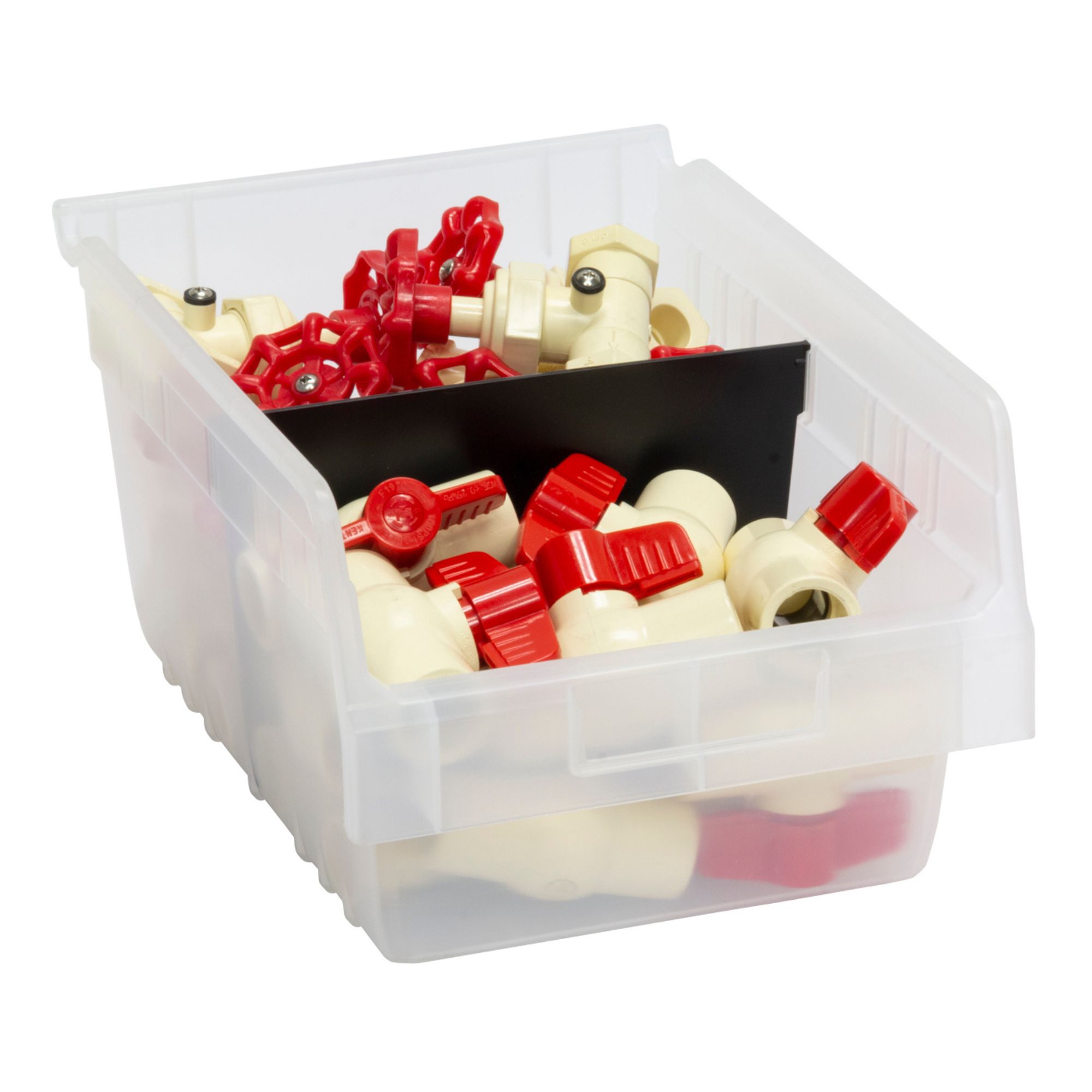 The smart, space-saving design allows the bins to stack securely, maximizing vertical storage while freeing up valuable floor space. An extra-wide stacking ledge enhances stability and helps prevent spills, while the built-in anti-slide stop keeps stacked bins from shifting forward. For a customizable organization, optional dividers and label holders, sold separately, allow you to tailor each bin to your needs and create an efficient storage system. These bins can also be paired with compatible shelving or cabinets, sold separately, for an even more streamlined setup.