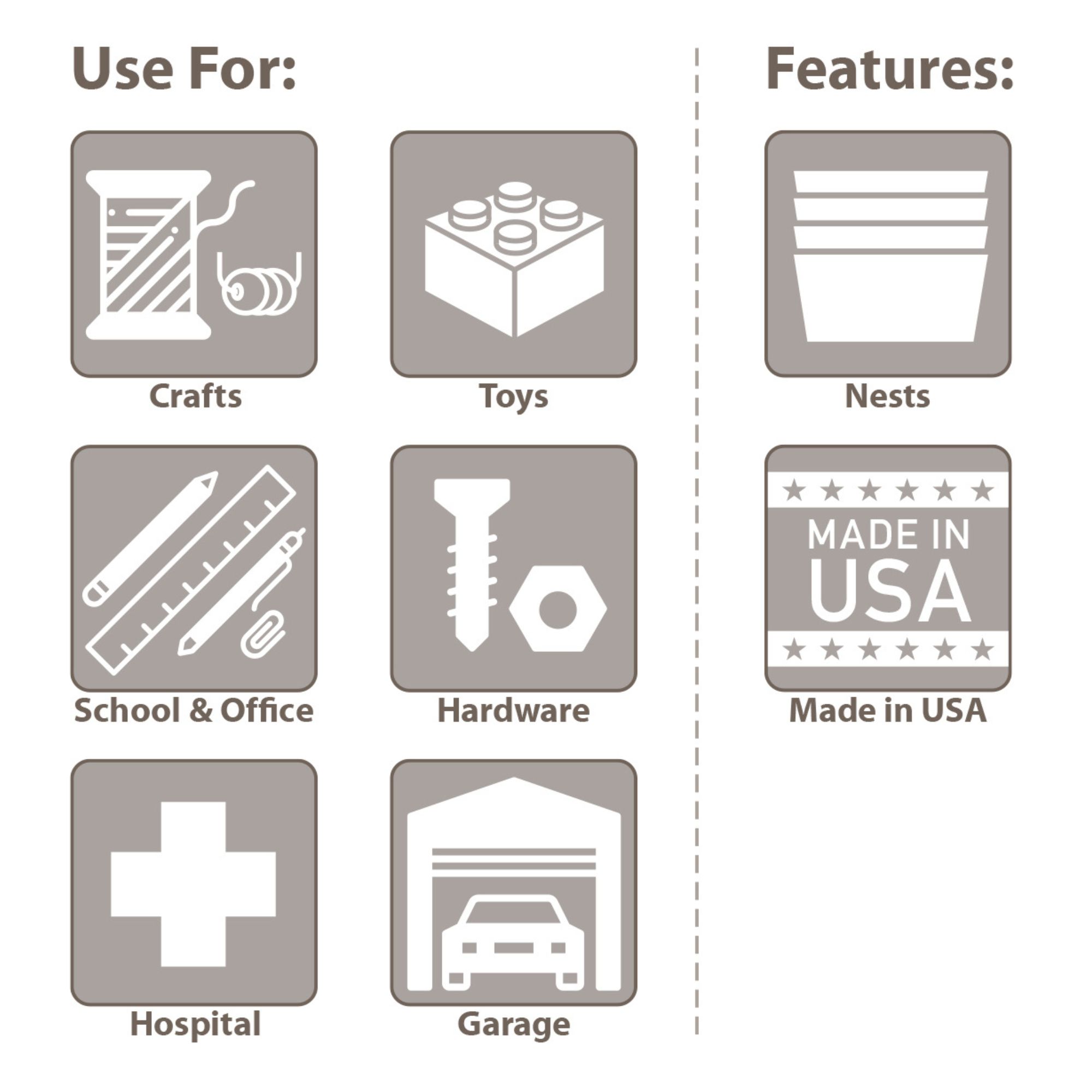 Maximize your storage space with the Akro-Mils 8 Pack ShelfMax Plastic Nesting Storage Shelf Bins, designed to organize a variety of small to medium items with dependable strength and efficiency. These super-size bins are ideal for garage organization, classrooms, warehouses, closets, and pantries.