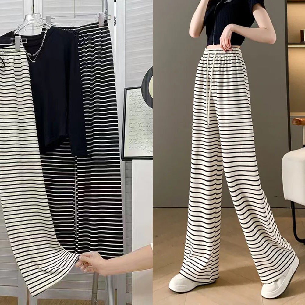 * Caractéristiques du produit : Pantalon rayé pour femme, style streetwear droit, mode loose casual, simple