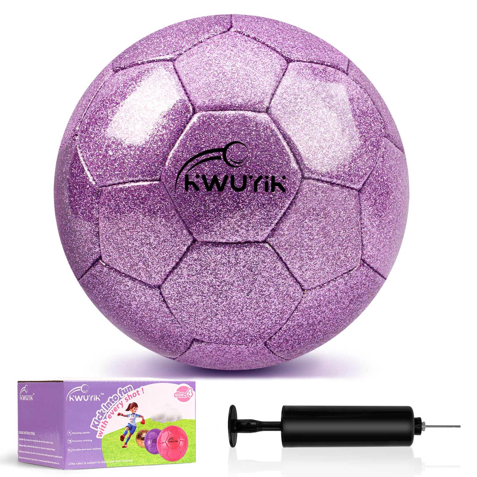 OKWUYiK Size 4 Glitter Purple Soccer Ball Set with Pump Youth Soccer for Kids Aged 6-8 8-12 Toddler Outdoor Training Ball Soft Sports for Back to School Sports Outdoor