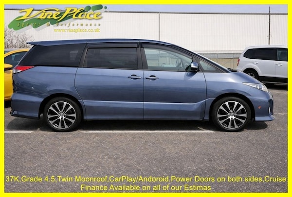 Toyota Estima 2.4 Facelift - Rare Shoreline Blue - Only 37,000 Miles - ULEZ Compliant The Toyota Estima is the ultimate blend of practicality and car-like manoeuvrability, sitting as Toyotas second-largest MPV just behind the Alphard/Vellfire. This specific facelift model is a standout example, finished in the rare and stunning Shoreline Blue Pearl. With a high auction Grade 4.5 (non-accident history) and only 37,000 warranted miles, this vehicle represents exceptional quality and value. ________________________________________ Key Vehicle Highlights •ULEZ Compliant: Ready for London and other Low Emission Zones. •Ultra-Low Mileage: Just 37,000 miles, backed by a BIMTA/AA mileage certificate. •High Grade Import: Auction Grade 4.5, ensuring the vehicle is in very good order. •Modern Tech: Pre-fitted with a UK infotainment system featuring Apple CarPlay and Android Auto. •Fuel Efficient: The 2.4L engine delivers an impressive 34.8 MPG (8.1 ltrs/100km). ________________________________________ Comprehensive Specifications Interior & Comfort •7-Seater Layout: Spacious dark grey cloth seating for the whole family. •Double Moonroof: Factory-fitted twin moonroofs for an airy, open cabin feel. •Luxury Seating: Middle seats feature integrated leg rests for passenger comfort. •Versatile Cargo: Includes 60/40 split and fold-away rear seats to maximize boot space. •Convenience: Keyless entry and starting, cruise control, and twin power sliding doors. ______________________________________ Safety & Performance •Driving Dynamics: Equipped with a 170BHP 2.4L engine and switchable Power/Economy modes. •Visibility: Xenon directional headlamps (AFS) with headlamp wash and a color reverse camera. •Family Safety: Factory-fitted ISOFIX points and a 3-point middle rear seat belt. •Driver Aids: Traction control and retractable mirrors for tight parking. •Protection: Toyota alarm and immobilizer system included. _________________________________________ The Vine Place Advantage We have been importing high-quality vehicles from Japan since 1997. Every car we sell undergoes a rigorous preparation process to ensure total peace of mind: •Fresh Import: Directly sourced from Japan with all factory recalls carried out. •Full Preparation: Supplied with a comprehensive service and MOT (including all advisories addressed). •Protection: All exposed are.