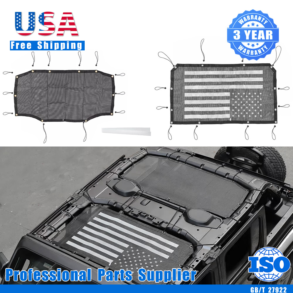 This Sunshade is a black mesh screen made of lightweight, durable Polyester. With bungee ball cords, it fastens snugly to your Wrangler’s roll bars, letting you answer the call of the open road while reducing UV rays that lead to harmful sunburn and fading & cracking of your vehicle’s interior surfaces. No tools are required, and it even fits under your hard top or soft top with the removal of just a couple of bungees.