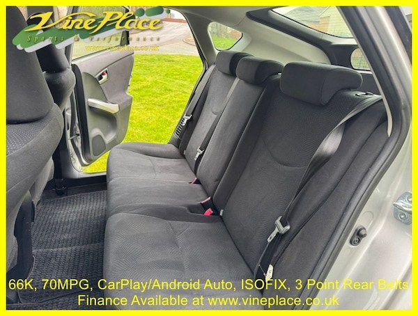 Lovely Prius with Apple CarPlay and Andorid Auto. Sold with BIMTA mileage certificate warranting the low miles, full MOT and a comprehensive service. 1041 .ABS Brakes, Adjustable Steering Column/Wheel - Rake, Air Bag Driver, Air Bag Passenger, Air Bag Side - Driver/Passenger, Air-Conditioning - Automatic, Alarm - Remote Control, Bi Xenon Lighting System, Bluetooth Phone Preperation, Body Coloured Bumpers, Central Door Locking - Remote, Centre Rear Seat Belt, Child Locks, Clock - Digital, Computer - Driver Information System, Cup Holder, Electric Door Mirrors, Electric Windows - Front/Rear, Electronic Stability Programme, Folding Split Rear Seats, Front Fog Lights, Front Head Restraints, Full 12 months MOT, Hands Free Bluetooth Kit, Head Restraints - Front/Rear, Heated Rear Screen, Immobiliser, Isofix Child Seat Anchor Points, Keyless Entry, Metallic Paint, Multi Function Steering Wheel, Park Distance Control - Reverse Camera, Power Assisted Steering, Power Socket, Rev Counter, Satelite Navigation, Seat Belt Pre-Tensioners - Front/Rear, Seat Height Adjustment - Driver, Seating Capacity - Five Seats, Seats Split Rear 60/40, Spoiler, Steering Wheel Mounted Controls, Third Brake Light, Tinted glass, Traction Control, Trip Computer, Wash/Wipe - Rear, Xenon Headlights