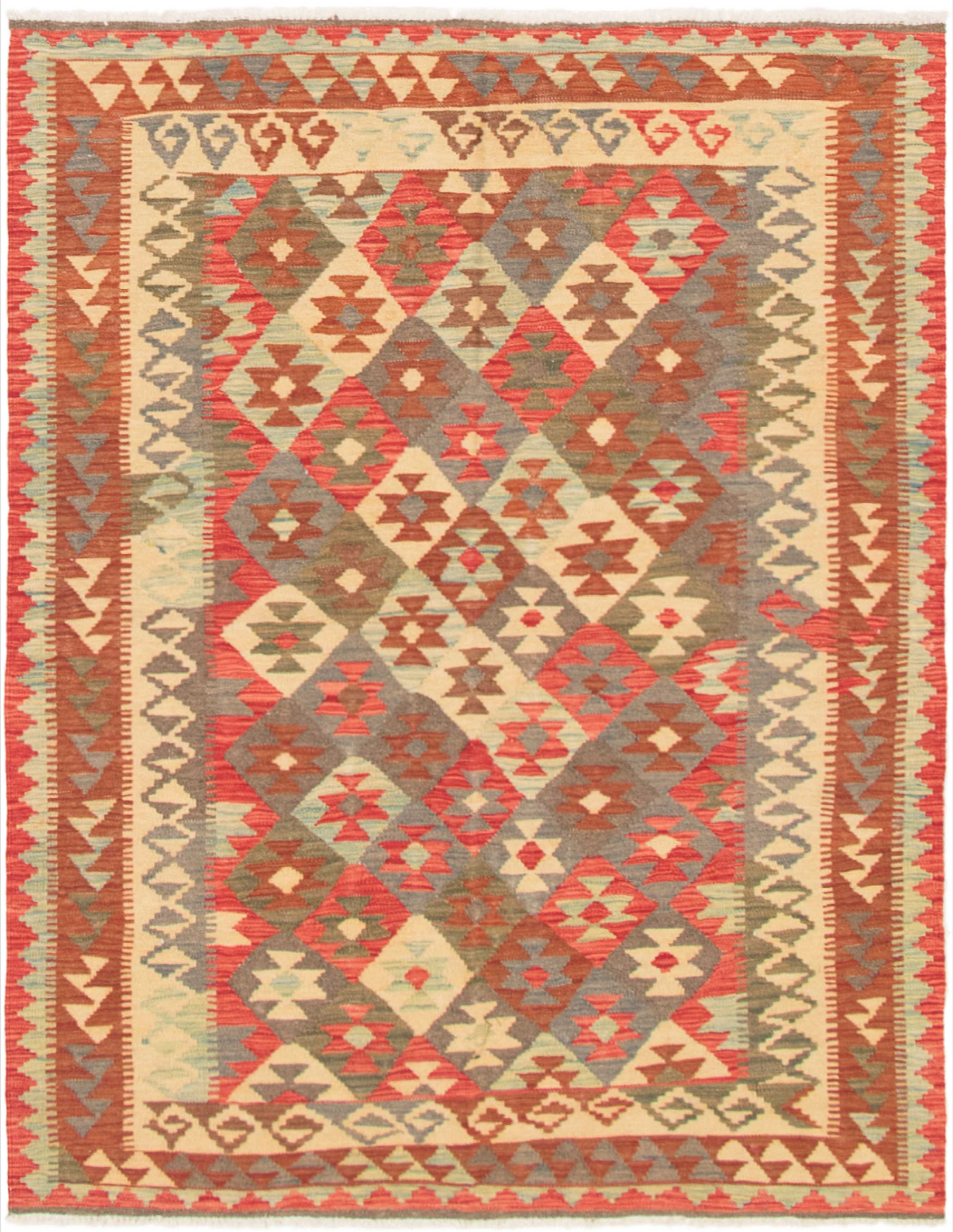 Flat-weave turkish kilims, Light but sturdy, they are perfect for high-traffic areas such as the hallway or the kitchen Bordered, Flat-weaves & Kilims, Geometric style kilim with Brown, Cream, Dark Grey, Light Green, Red accent colors Imported from Turkey and crafted using the finest weaving techniques Flat-weave and constructed from 100% Wool with 100% Cotton foundation 4-Feet 11-Inch by 6-Feet 4-Inch (150cm x 194cm)