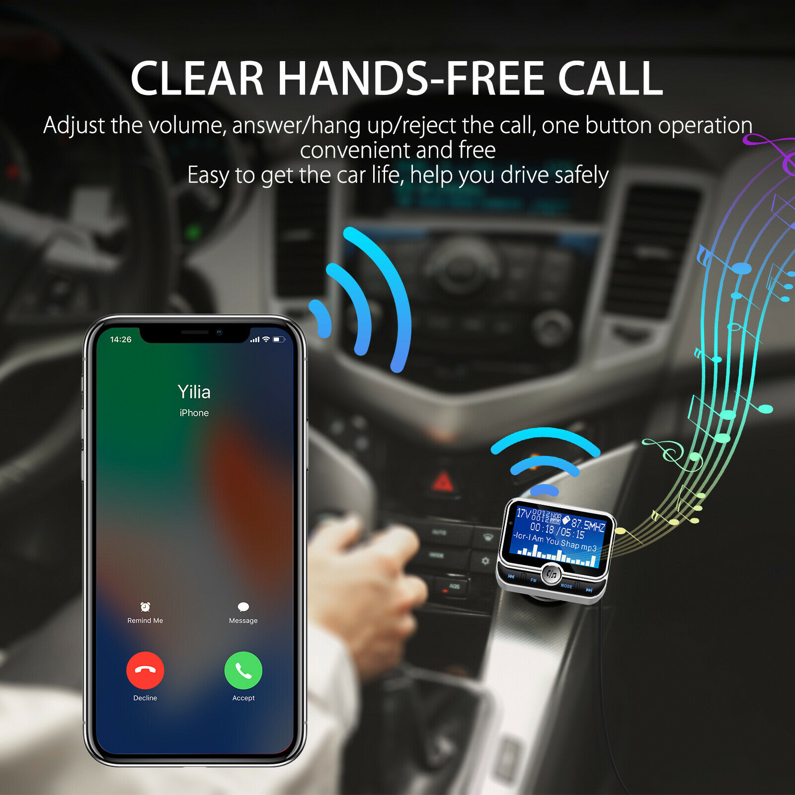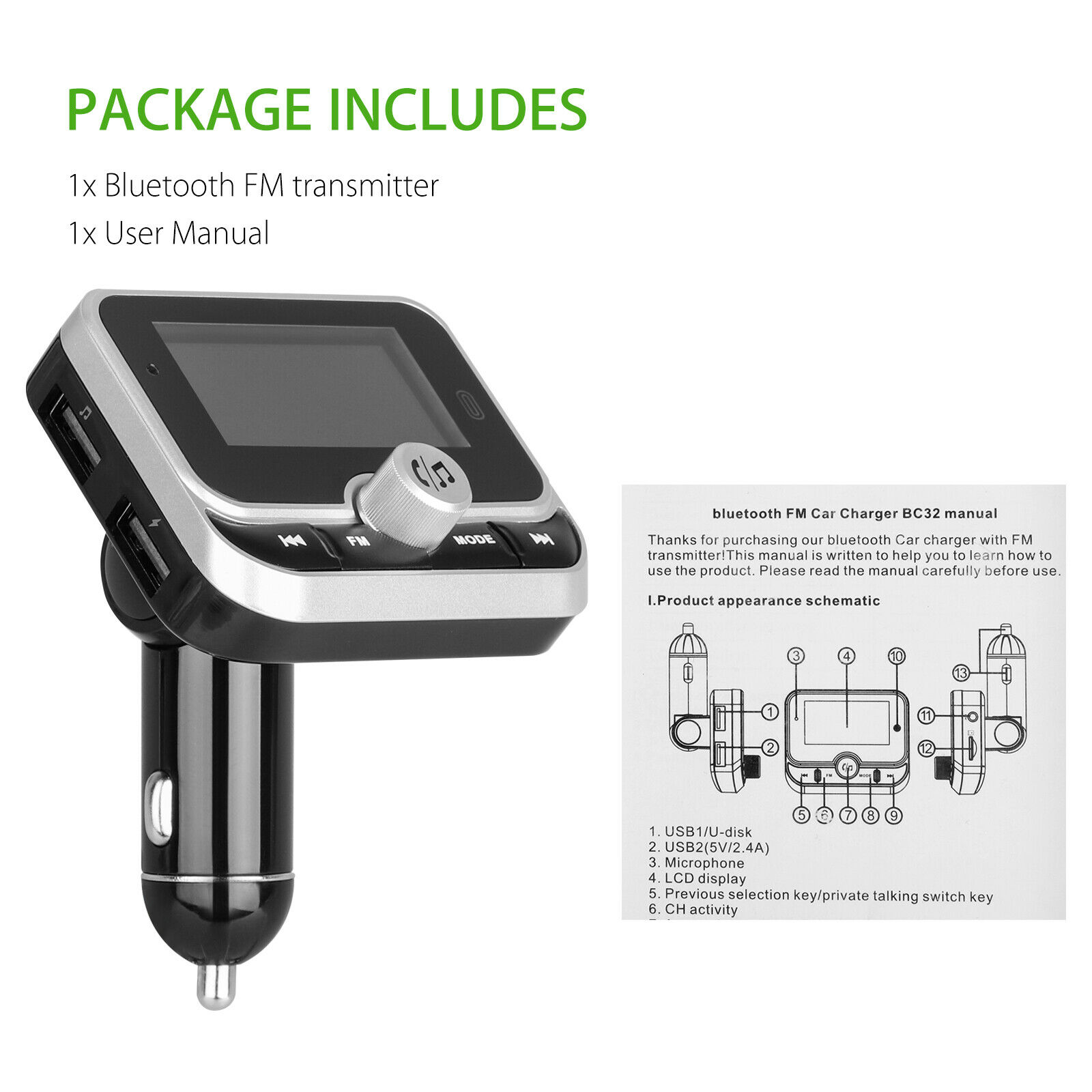 Easy to Use -- Plug it into the cigarette lighter socket, turn the car FM radio on, find an empty frequency, and match it to the transmitter; Insert a Micro USB flash driver or pair this Wireless BT FM transmitter with your digital device to enjoy music playback or hands-free conversation.