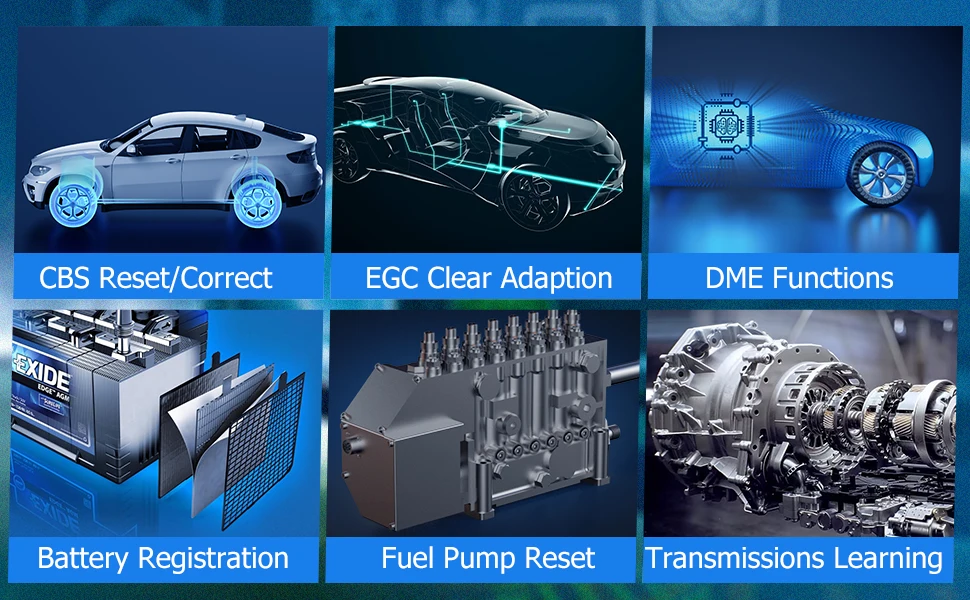 Digital Motor Electronics (DME) Functions: Including Injector Coding(IQA), Idle speed adjustment, fuel injection rate, CO adjustment, Exhaust Gas Recycling, engine clear adaption, etc.