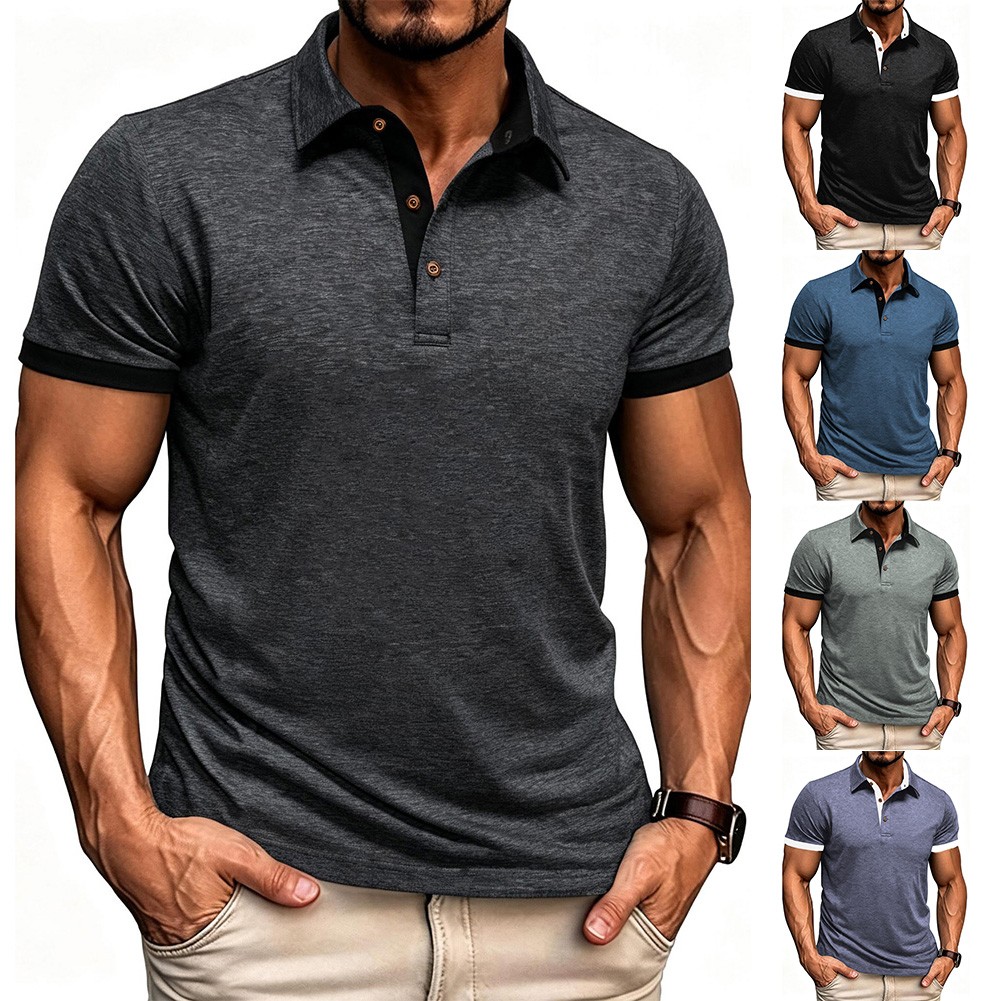 * Caractéristiques de l'article : hommes, coupe slim, t-shirt, revers, bouton, respirant, séchage rapide, manches courtes, pull, haut