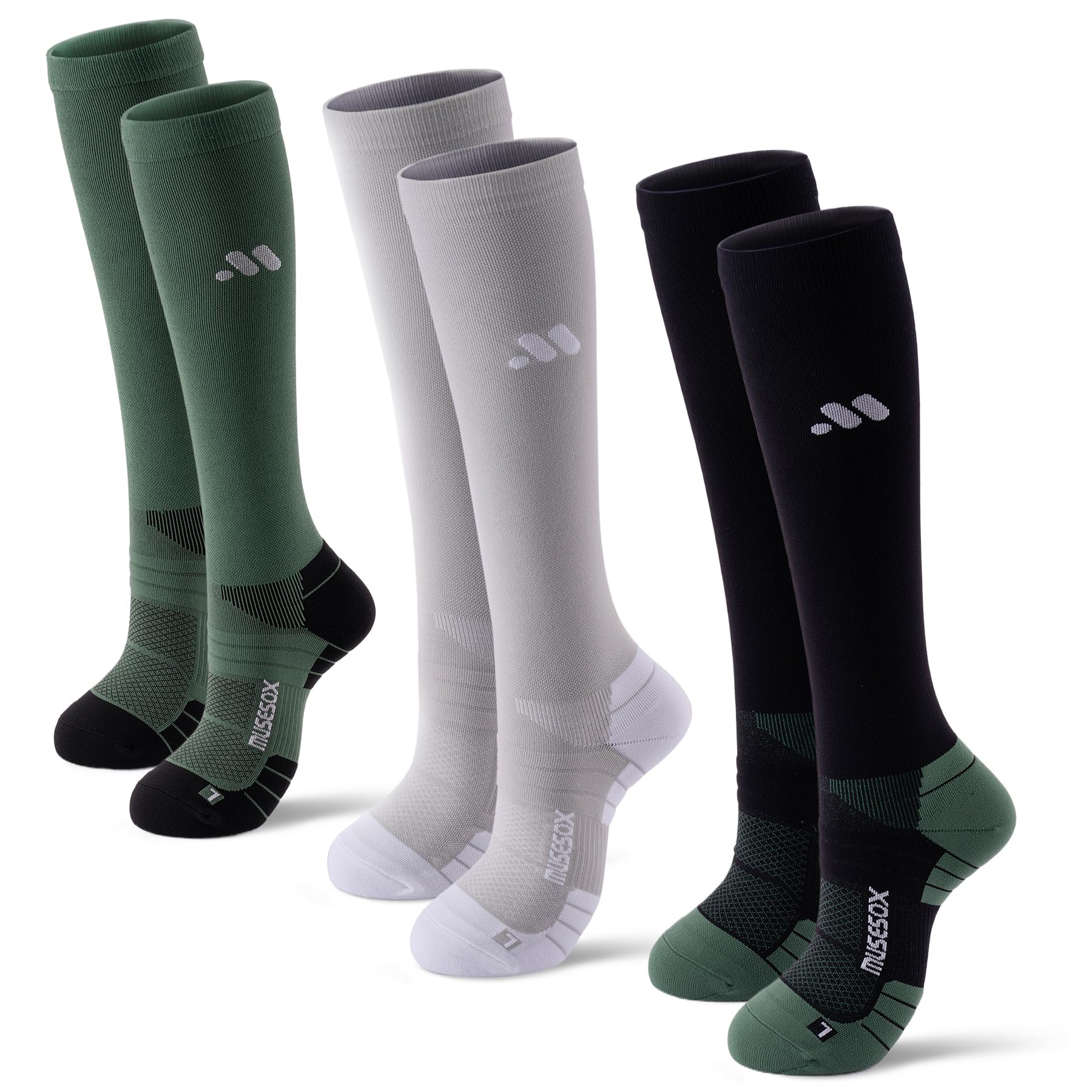 Musesox is a dynamic brand specializing in premium compression socks engineered to elevate comfort, performance, and leg health. Designed for athletes, travelers, professionals, and wellness-focused individuals, it leverages advanced technology and fashion, bringing all-day energy—whether tackling long flights, workouts, or staying on your feet. Combining dynamic-grade functionality with modern style, each pair offers targeted support. The socks are excellent for long flights and shifts, using 15-20mmHg graduated compression to accelerate blood flow, reducing swelling, discomfort, or DVT risk from prolonged sitting or standing. They can be worn during workouts and exercise and are good for long distance running: upgraded material with higher nylon delivers 360-degree stretch for flexibility and durability, with standing high-intensity movement, reducing lactic acid and muscle vibration. They help with swelling via graduated compression that pushes excess fluid back into the circulatory system, easing swelling from sitting, standing, or inactivity. They help with varicose veins by reducing pressure on weakened vein walls, offering relief. They can be worn all day, with form-fitting, lightweight, breathable fabric keeping comfort during work, travel or gym sessions. Made with moisture-wicking fabric, the breathable material pulls sweat away, keeping feet dry, maintaining optimal temperature. They help with circulation by promoting blood and oxygen flow, preventing fatigue, and aiding muscle recovery. They are machine washable, retaining elasticity and durability even after repeated washes. They come in different sizes for a tailored fit. Suitable for athletes, nurses, flight crew, receptionists, office workers, pregnant women, and the elderly in all occasions. Designed for premium support without limiting mobility, they stay stable in any activity. Three sizes fit both women and men, making them ideal gifts for athletes, runners and those on their feet all day.
