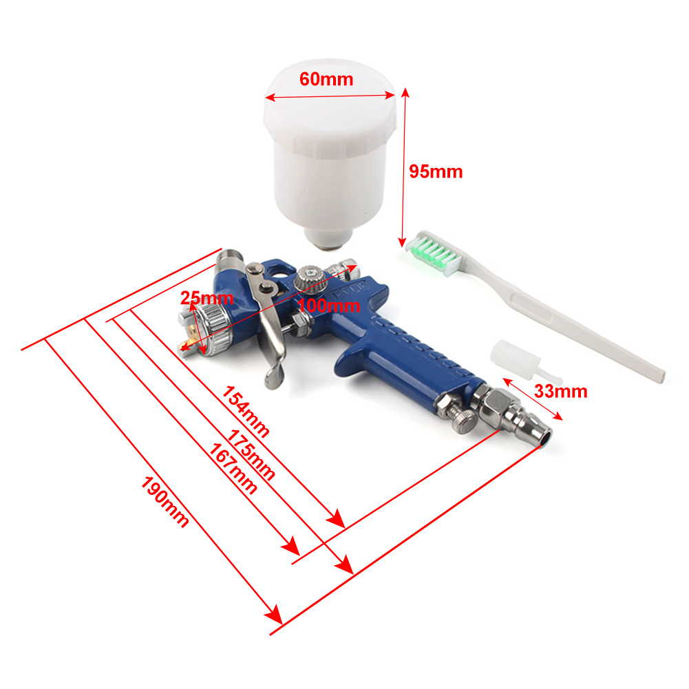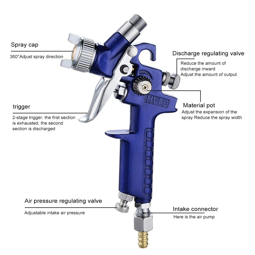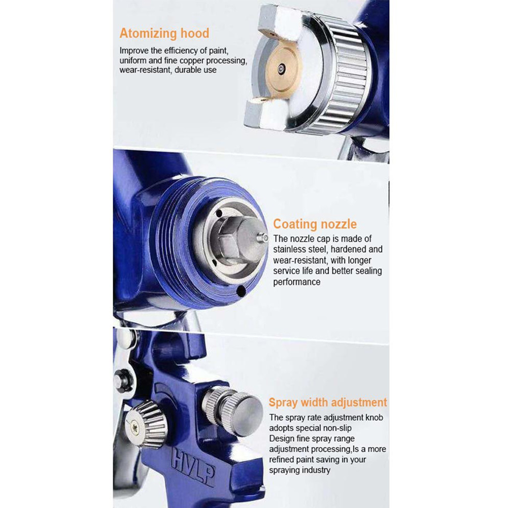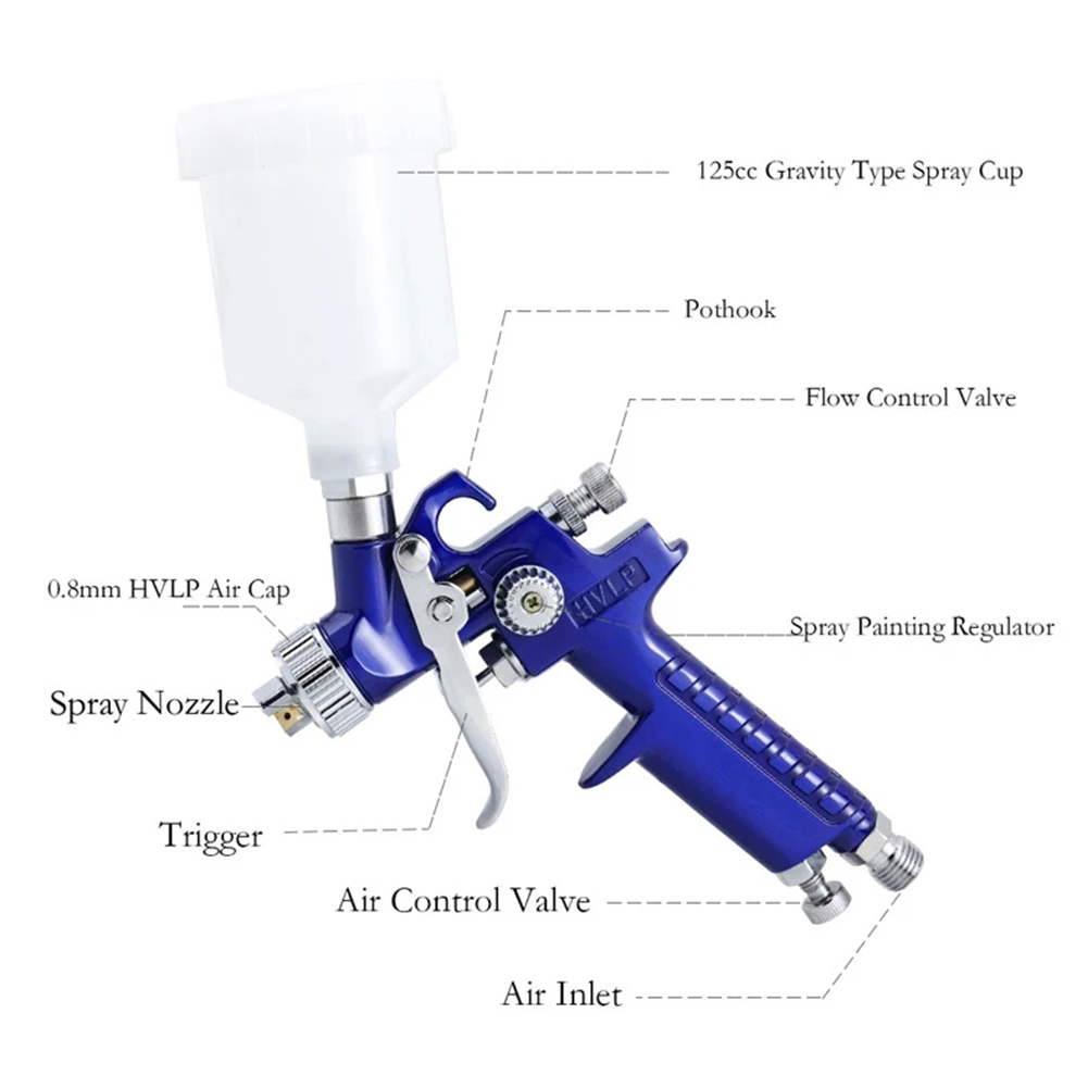 0.8mm/1.0mm Nozzle H2000 Professional HVLP Air Paint Spray Gun Auto Car Detail Touch Up Sprayer
