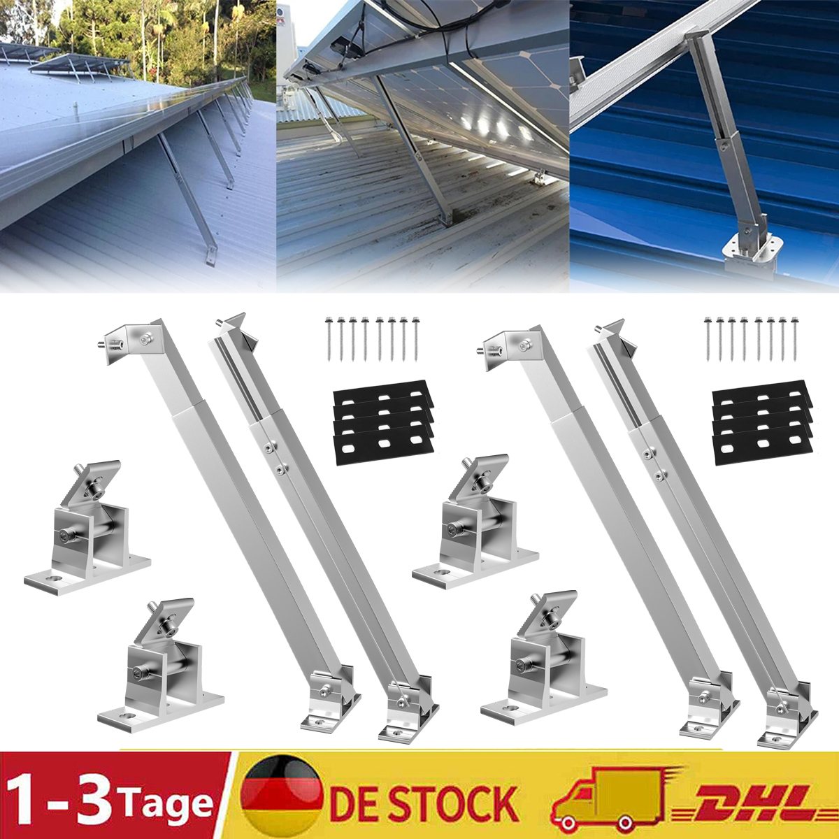 【HOHER WIRKUNGSGRAD】: Ideal für die Positionierung von Solarmodulen in einem Winkel auf einem Dach. Gewinnen Sie bis zu 25% mehr Wirkungsgrad, indem Sie Ihre Paneele in Richtung der Sonne neigen, anstatt sie flach zu legen.maximale Neigungswinkel hängen von der Größe der Solarmodule ab.