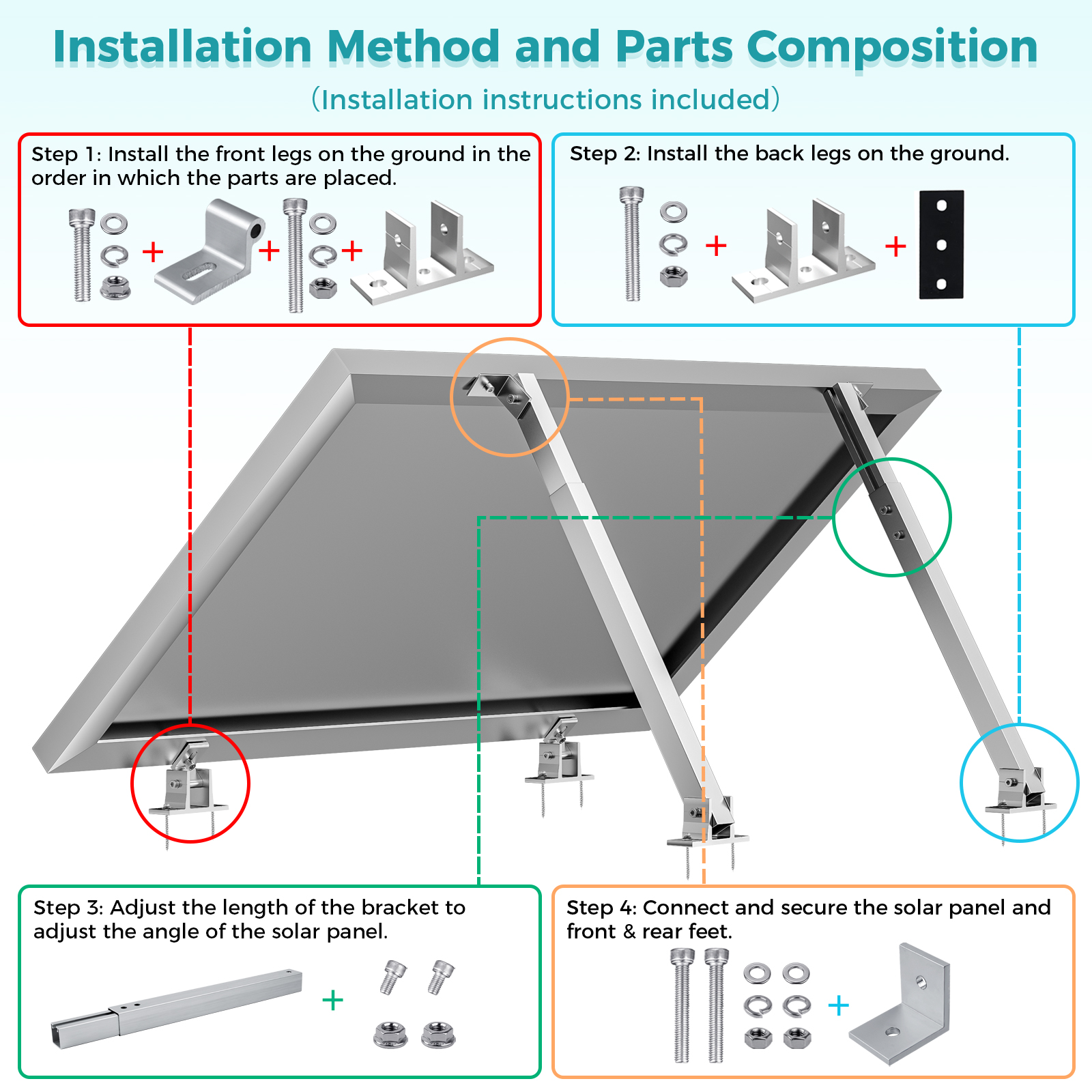 【EINFACH ZU INSTALLIEREN & EINZUSTELLEN】: Schnelle Montage mit Edelstahlverschlüssen und präziser Lochplatzierung. Das Paket enthält die Halterung zwischen Neigung und Panel.