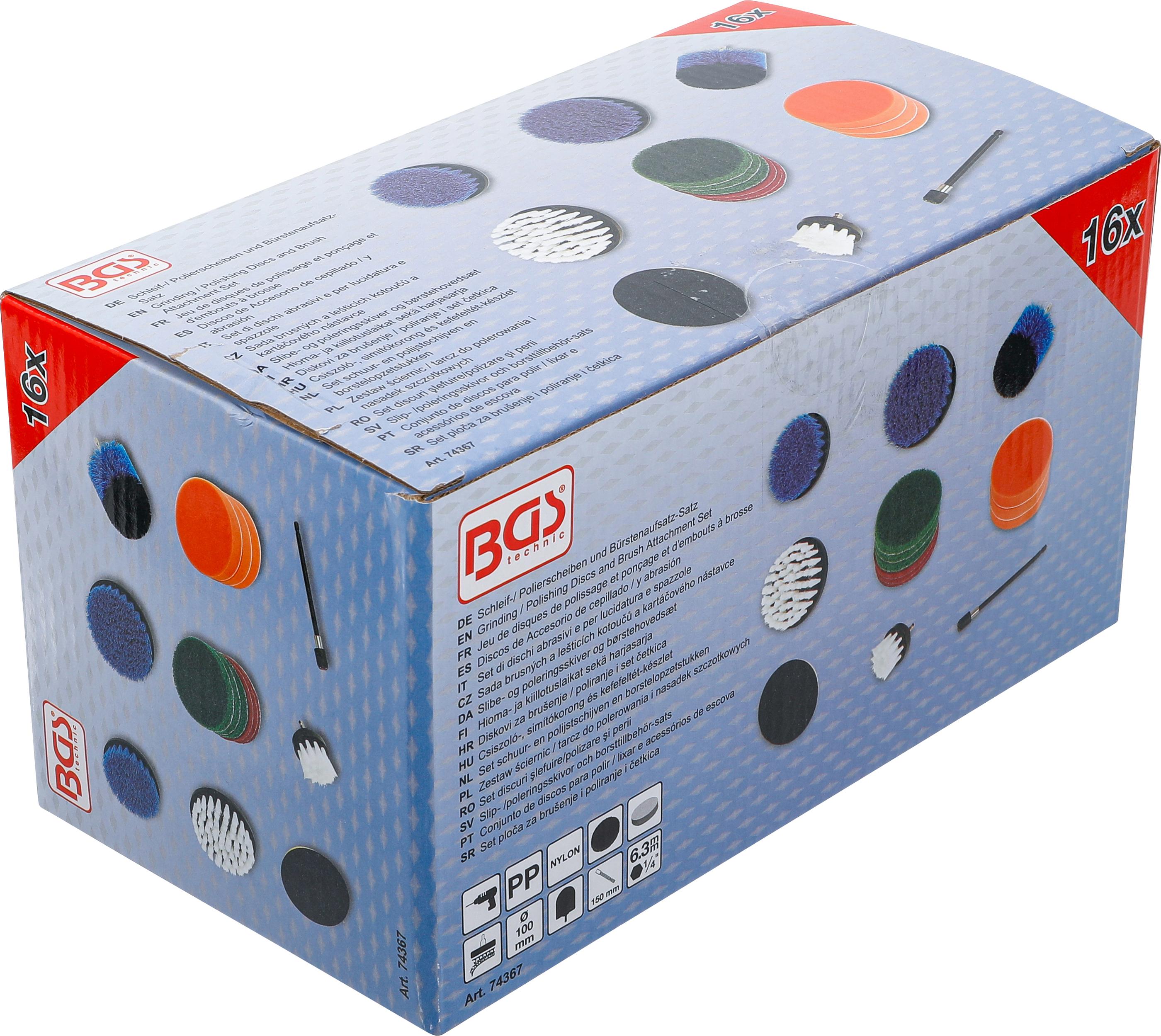 BGS Jeu de disques de polissage et ponçage et d’embouts à brosse | pour perceuses | 16 pcs.