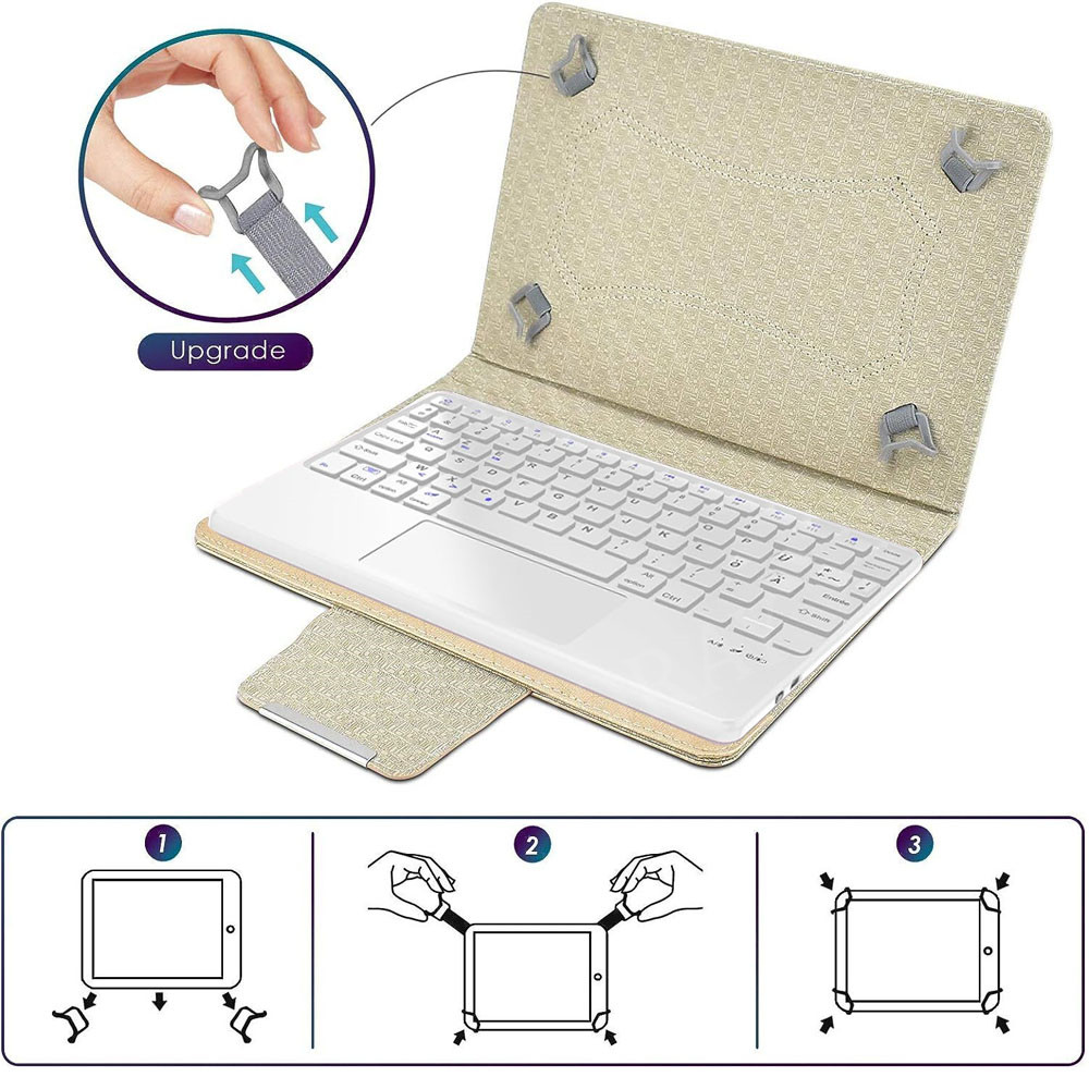 Dies ist eine abnehmbare Bluetooth-Tastatur. Die beste Wahl für alle 9.7~11" Zoll Tablet-Benutzer, wie z.B. für Samsung/Apple/Kindle/All android Tablet.