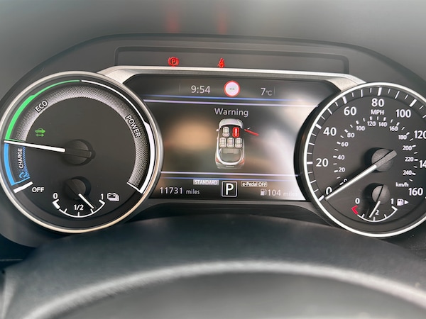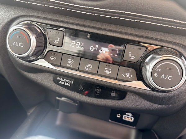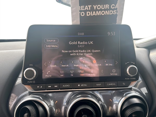 ..7'' full colour TFT screen combimeter, Apple CarPlay and Google Android auto, Drive modes select (Eco, normal and sport), e-Pedal step, Emergency and breakdown call, EV mode selector, Front parking sensor, Intelligent lane intervention, Lane departure warning system, Nissan connect 8'' touch screen entertainment system, Nissan connect nav with TomTom traffic, Nissan connect services and Wifi connection, Outside temperature sensor, Power Steering, Rear parking sensor, Traffic sign recognition, Trip computer, Voice recognition, Gasoline particulate filter, 10 Bose speakers 6 speakers and 2 headrest speakers for driver/passenger seats, Bluetooth system, USB, Aux-in and 12V socket, Bose personal sound stage control, DAB Digital radio, Rear console USB port, Auto dimming interior rear view mirror, Auto headlights, Automatic hazard signal with emergency stop signal, Body colour bumpers, Body colour door handles, Electrically adjustable door mirrors with integrated indicators, Follow me home headlights, Front and rear electric window with one touch driver window, Heated and auto folding door mirrors, High beam assist, LED daytime running lights, LED front fog lights, LED headlamps, LED rear fog lamp, LED rear lamps, Rain sensor windscreen wipers, Rear privacy glass, Rear side wing doors, Rear wiper, Thermaclear heated windscreen, Three blink turn signal, 3 height adjustable rear headrests, 3 seat bench in 2nd row, 60/40 split folding rear seat, Automatic climate control, Card holder on driver sunvisor, Door ambient lighting, Driver and passenger sliding and reclining seats, Driver seat back pocket, Driver side rear coat hanger, Driver/passenger sunvisors and vanity mirrors, Front and rear cabin lights, Front armrest, Front door pockets with bottle holders, Front head restraints, Front passenger isofix child seat anchorage point, Front/rear passenger grab handles, Gear console ambient circle lighting, Grey synthetic leather kneepad, Heated front seats, Height adjustable driver's seat, Height adjustable passenger seat, Internal chrome door handles, Leather gearshift knob, Leather steering wheel, Luggage board, Luggage space lighting, Monoform sporty seats, Multifunction steering wheel, Passenger seat back pocket, Rear door bottle holders, Single front passenger seat, Steering wheel mounted gearshift paddles, Synthetic leather upholstery, Telescopic steering wheel adjustment, Two cupholders in front centre console, Two rear isofix child seat anchorage points with