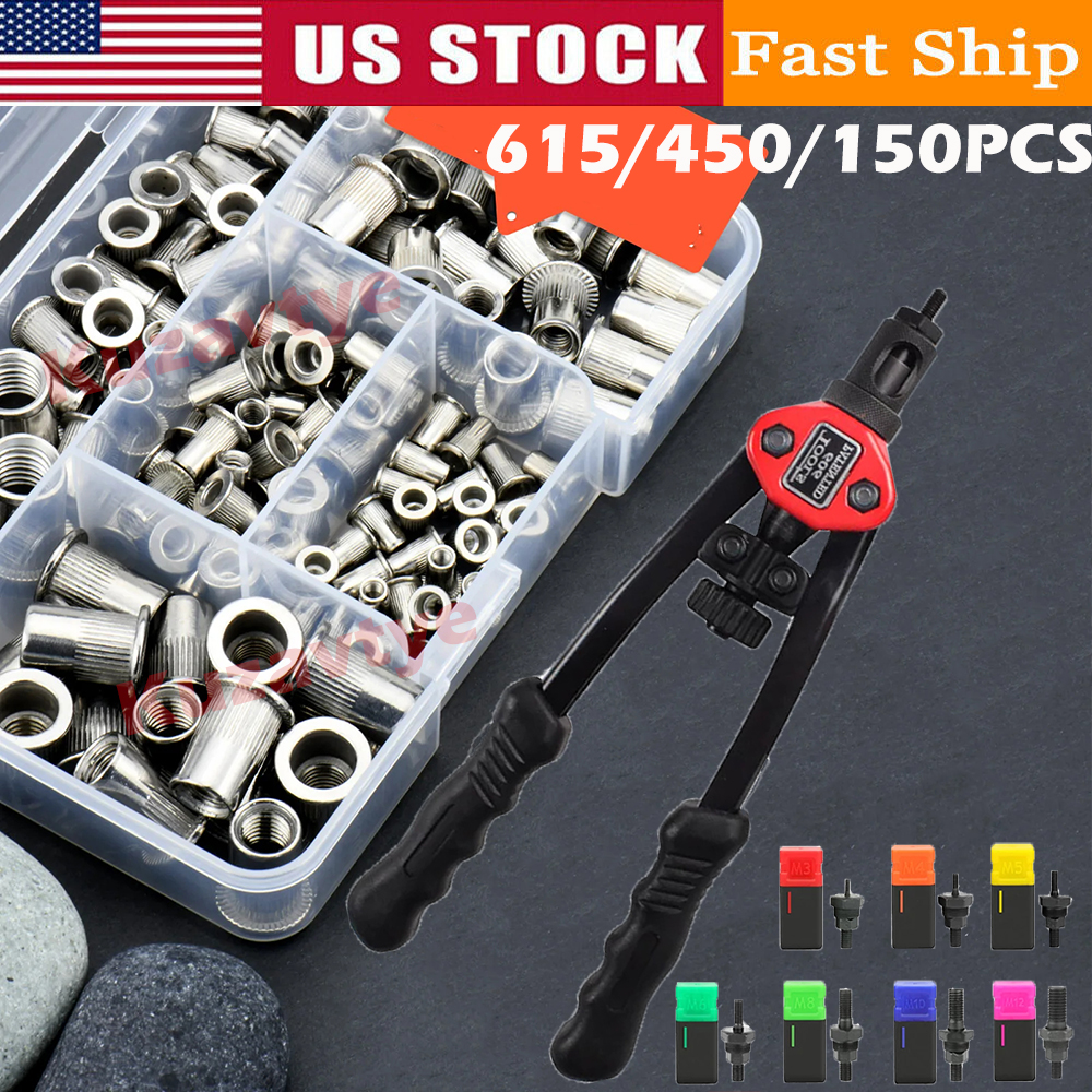 Features: -rivet nuts are made of Stainless Steel, strong rust and corrosion resistant for a long time use; anti-oxidation, healthy and lead-free, high strength, non-deforming, load-bearing threads. - The rivet nuts kit is usually applicated in various metal sheets, pipes and other manufacturing industries, and widely used in automotive, furniture, decoration and other electrical and industrial products. -All dimensions are measured manually, there may be measurement errors, please don't mind. The product are small parts and not suitable for children, please keep them away from kids.