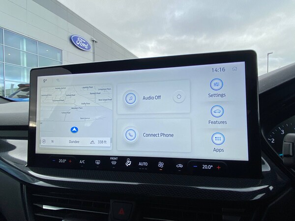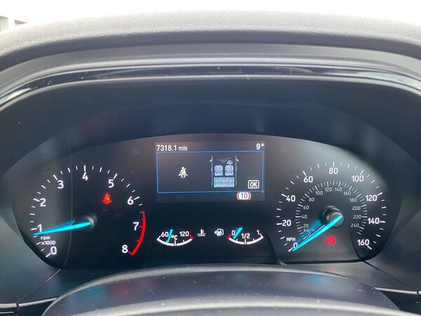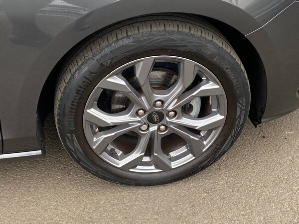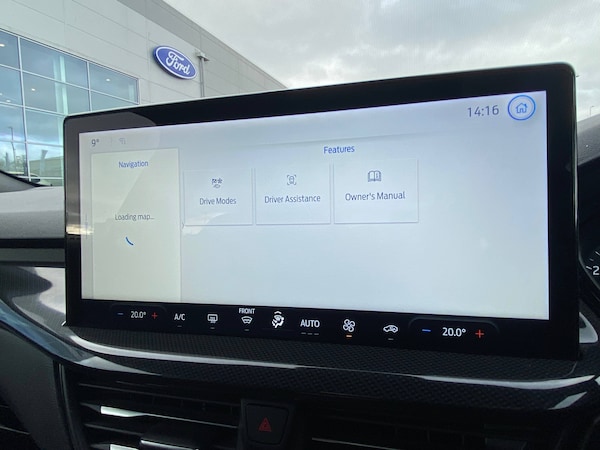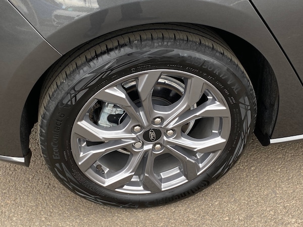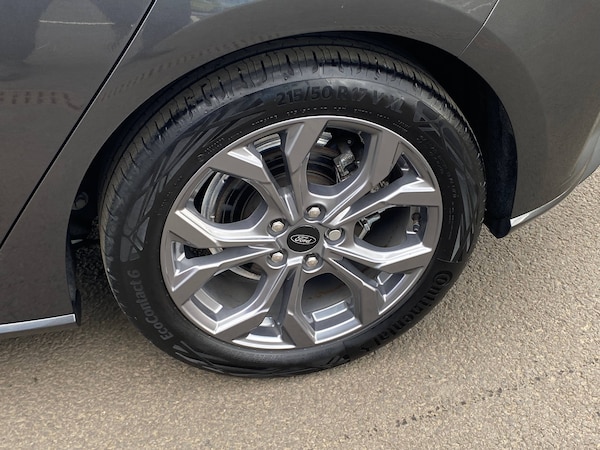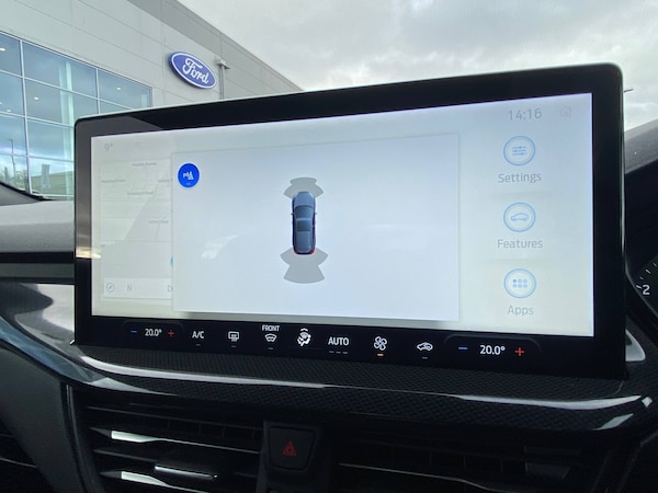3x3 point rear seatbelts, ABS+Electronic Brake force Distribution, Auto hold function, Driver airbag, EDL traction control, Electronic parking brake, Electronic stability control, Front and rear seatbelt reminder, Front inertia reel height adjustable seatbelts with pre-tensioners, Front passenger airbag, Front side airbags, Passenger airbag deactivate switch, Post collision braking, Pre collision assist with autonomous emergency braking and pedestrian/cyclist detection, Remote/power child rear door locks, Side curtain airbags, Three rear inertia reel lap/diagonal seatbelts, Tyre pressure monitoring system, 4.2 inch Colour TFT Ice blue illumination analogue cluster with trip computer, Bluetooth system, Cruise control including adjustable speed limiter, Digital clock, Easy fuel capless refuelling system, Eco mode, Ford SYNC 4 Navigation with 13.2 inch touchscreen, DAB radio, Emergency Assistance, Apple Carplay and Android Auto, 6 speakers and FordPass Connect, Front and rear parking sensors, Lane keeping system - lane keeping alert and lane keeping aid, PAS, Rev counter, Selectable drive mode, Service interval indicator, Auto headlamps (on/off), Body coloured door handles, Electrically operated front and rear windows with one touch opening and closing, Electrically operated heated power fold door mirrors with puddle lamp with side indicators, Front variable intermittent wipers with electric wash, Full fixed LED headlamps, Heated rear window, LED daytime running lamp, LED rear lamps, LED third brake light, Polished twin tailpipe, Privacy glass, Quickclear heated windscreen, Rain sensor, Rear side wing doors, Solid paint, Tailgate wash/wipe, Unique ST-Line grille, full bodystyling kit, and large body coloured rear spoiler, 3 rear headrests, 3 seat bench in 2nd row, Cloth upholstery, Dual zone electronic air temperature control, Height adjustable front headrests, Isofix child seat preparation, Manual 4-way driver seat adjust, with manual lumbar adjust, Manual 4-way passenger seat adjusts, Reach + rake adjustable steering column, Single front passenger seat, Sports tuned suspension, Keyless entry and keyless start, MyKey system, Remote central locking and engine immobiliser, Thatcham alarm with power door dead locks, 2 USB ports, 17 inch 5 spoke Rock mettalic finish alloy wheels with mini spare wheel