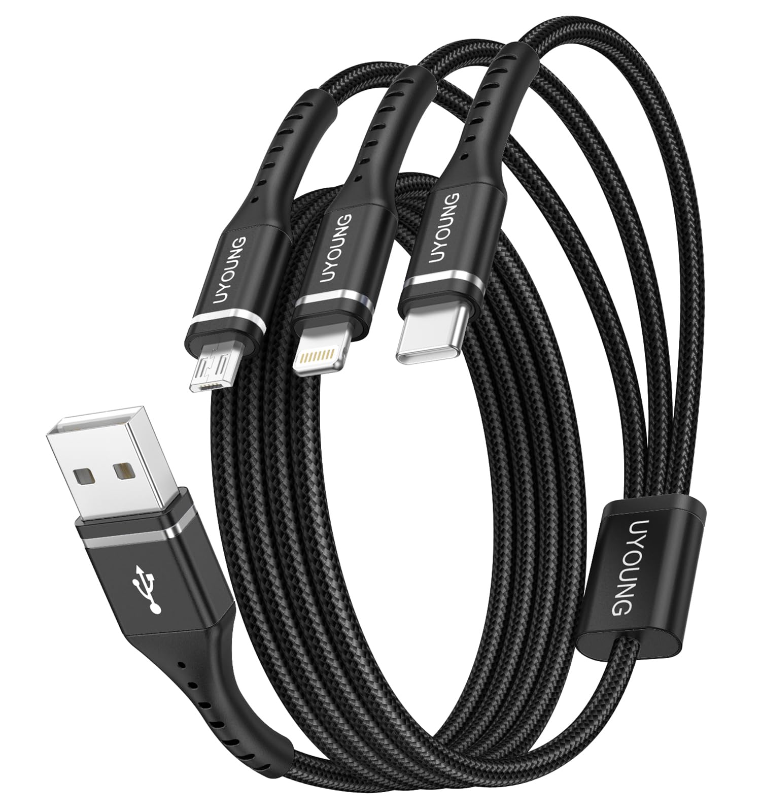 【Charging Cables for Multiple Devices】This 3 in 1 charging cable comes with 3 different connectors, Lightning, USB C, and Micro USB. It charges 3 devices at the same time and is widely compatible with Apple, Android phones, tablets, and more; It is compact, portable, and perfect for home, office, car, hotel, and travel charging. Don't worry about finding a matching charging cable anymore.