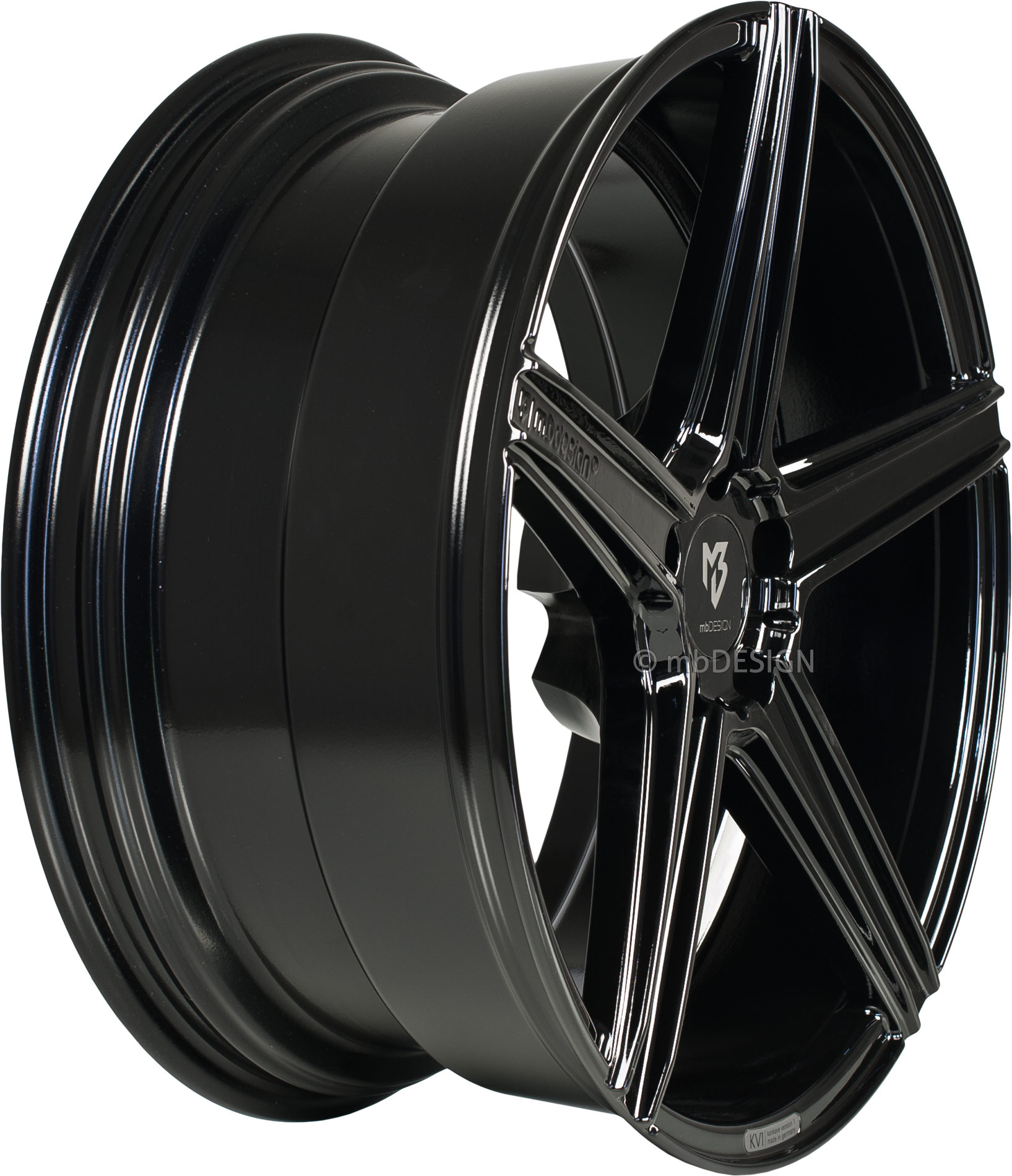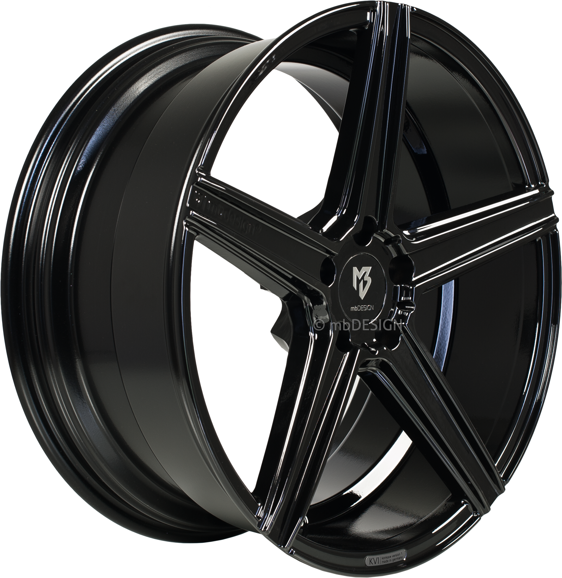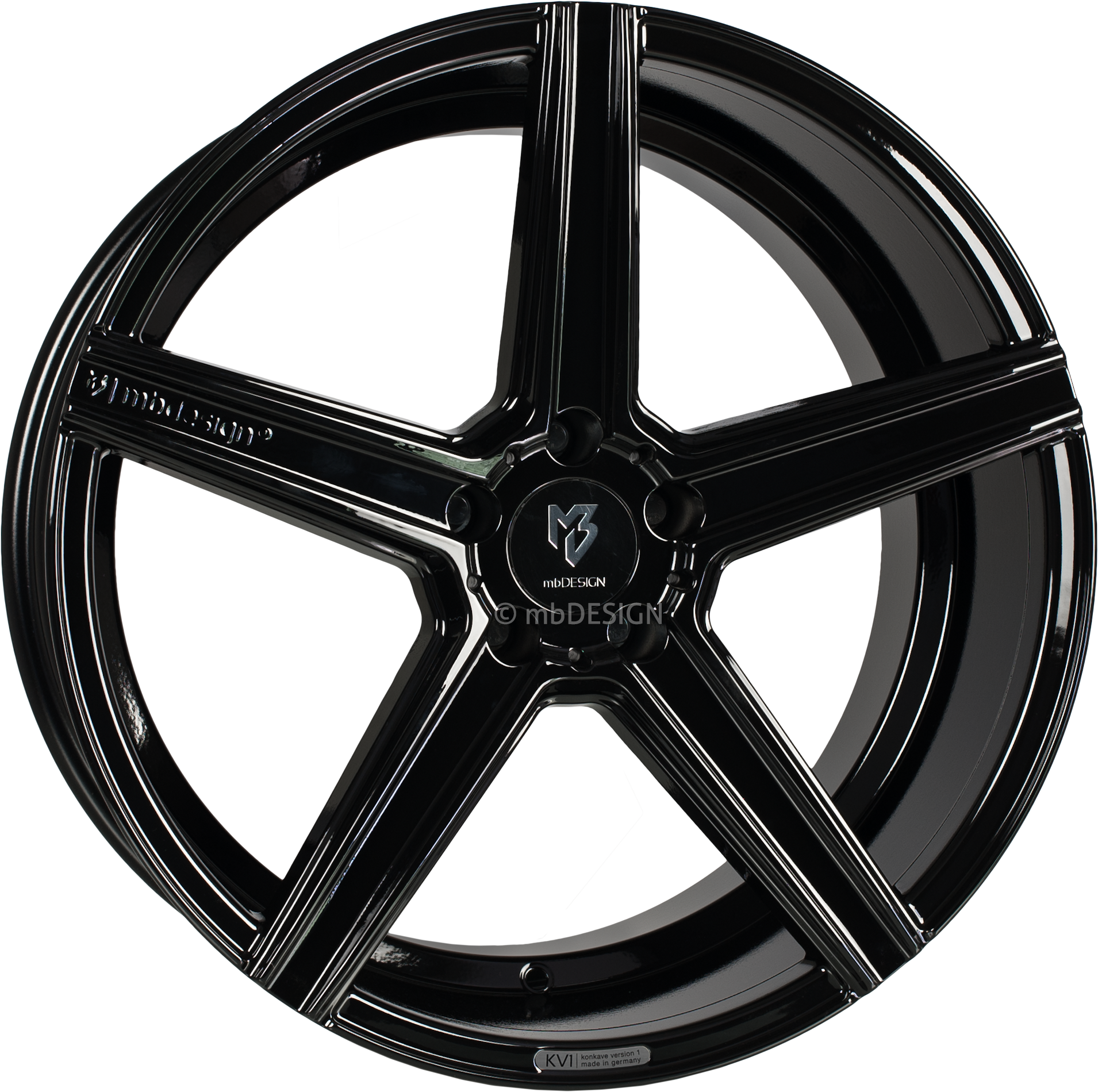 2x mbDESIGN Aluminiumrad gegossen KV1 10,0x22 Zoll (konkaves Design) LK 5x112 ET53.0 ML 75.0 Ausf. 5B2 schwarz glänzend lackiert