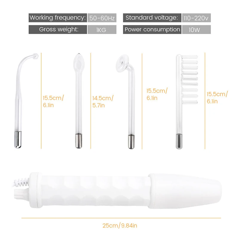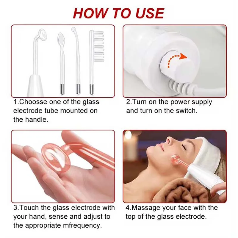 The high frequency electrotherapy is an important beauty instrument. It is through the glass electrode tube to produce high frequency current, and apply to the skin, thus achieves the treatment result.It helps to calm the nerve and has analgesia function.Has the function of anti-aging, anti-wrinkle and skin-tightened.Improve secretion, the PH value causes the skin lean to neutrality.Accelerate blood circulation and improve metabolism.It produces the ozone for sterilization, can help wound to heal and to restrain pores.