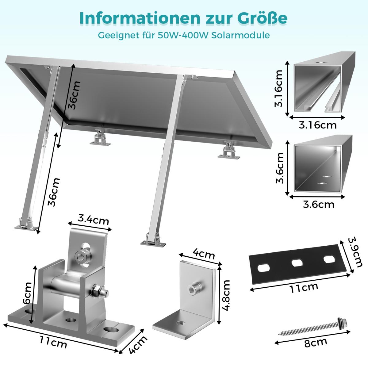 【HOHER WIRKUNGSGRAD】: Ideal für die Positionierung von Solarmodulen in einem Winkel auf einem Dach. Gewinnen Sie bis zu 25% mehr Wirkungsgrad, indem Sie Ihre Paneele in Richtung der Sonne neigen, anstatt sie flach zu legen.maximale Neigungswinkel hängen von der Größe der Solarmodule ab.
