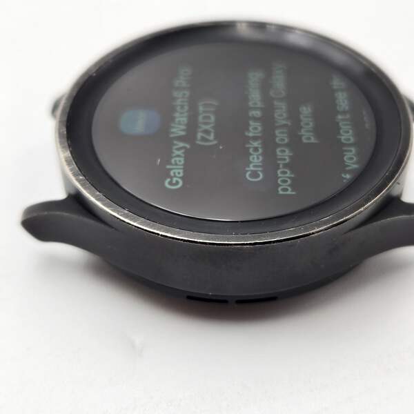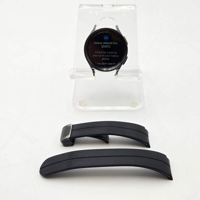 The Samsung Galaxy Watch 5 Pro is a sleek and stylish smart watch perfect for all your needs. This uséd model comes in a sophisticated black finish with a durable aluminum case and an aftermarket band, offering both comfort and durability for daily wear.