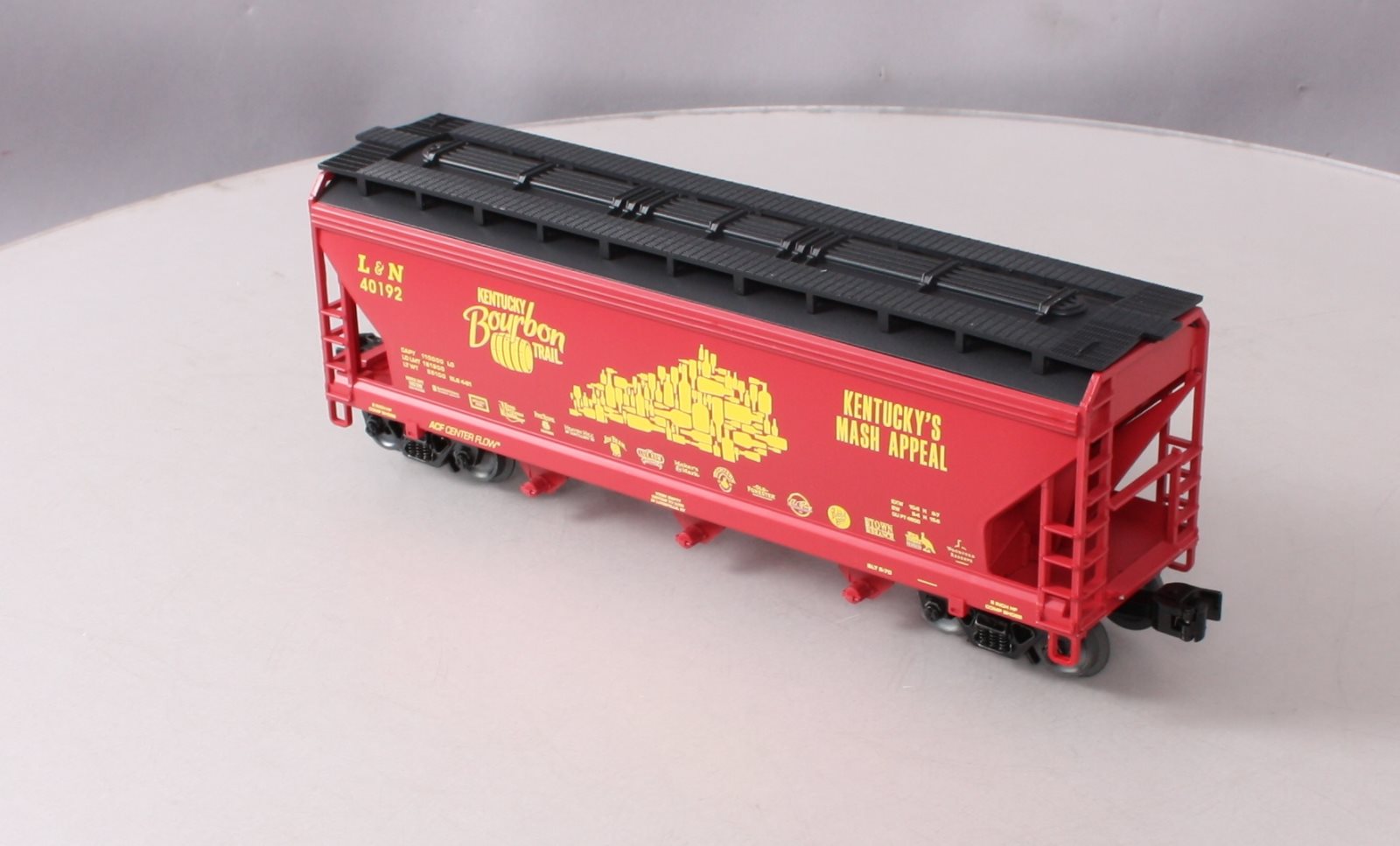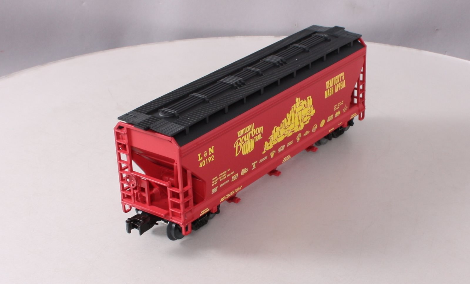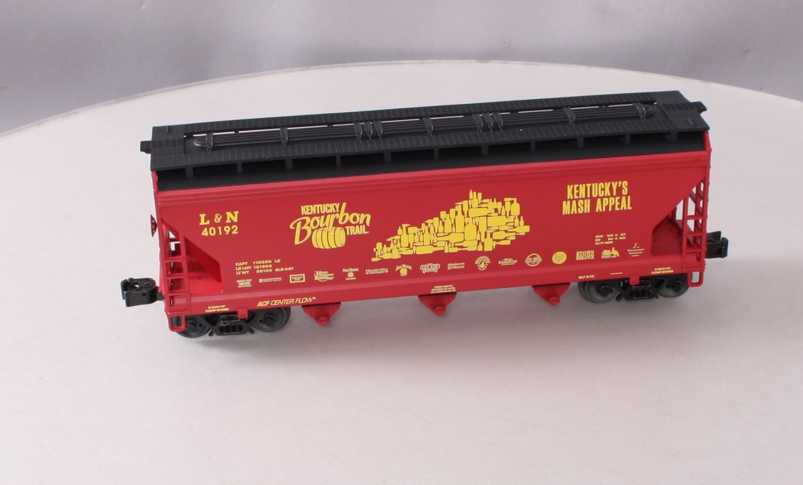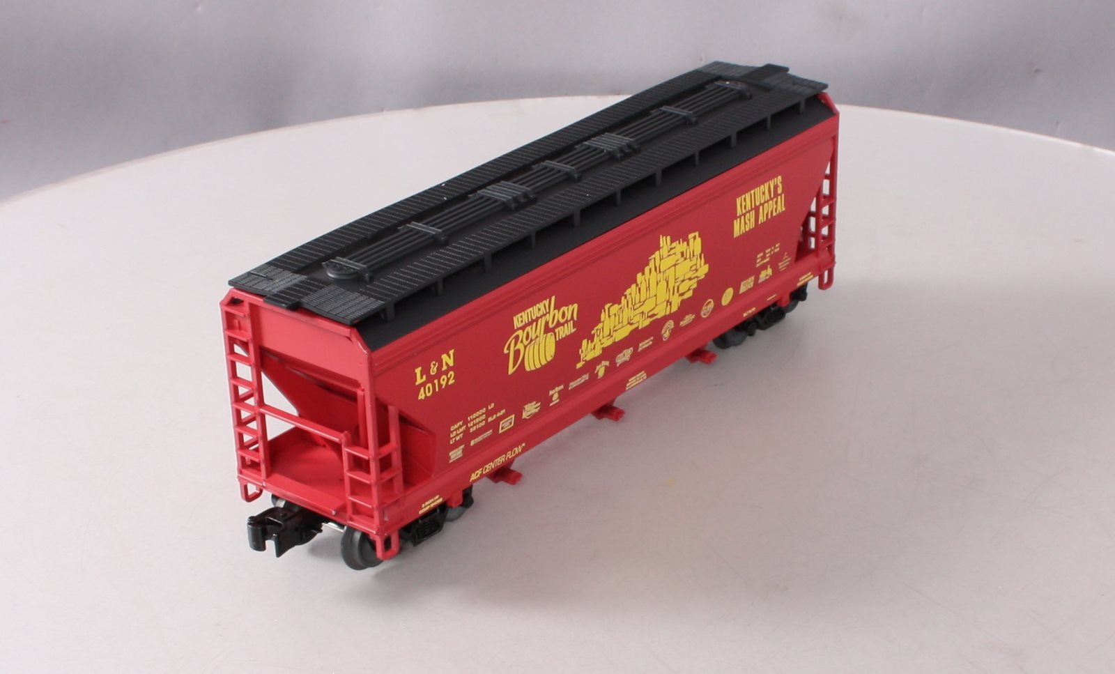 Here is a Lionel O Kentucky Burbon Trail Hopper #40192.This car features die-cast metal sprung trucks, operating knuckle couplers, and metal wheels and axles.