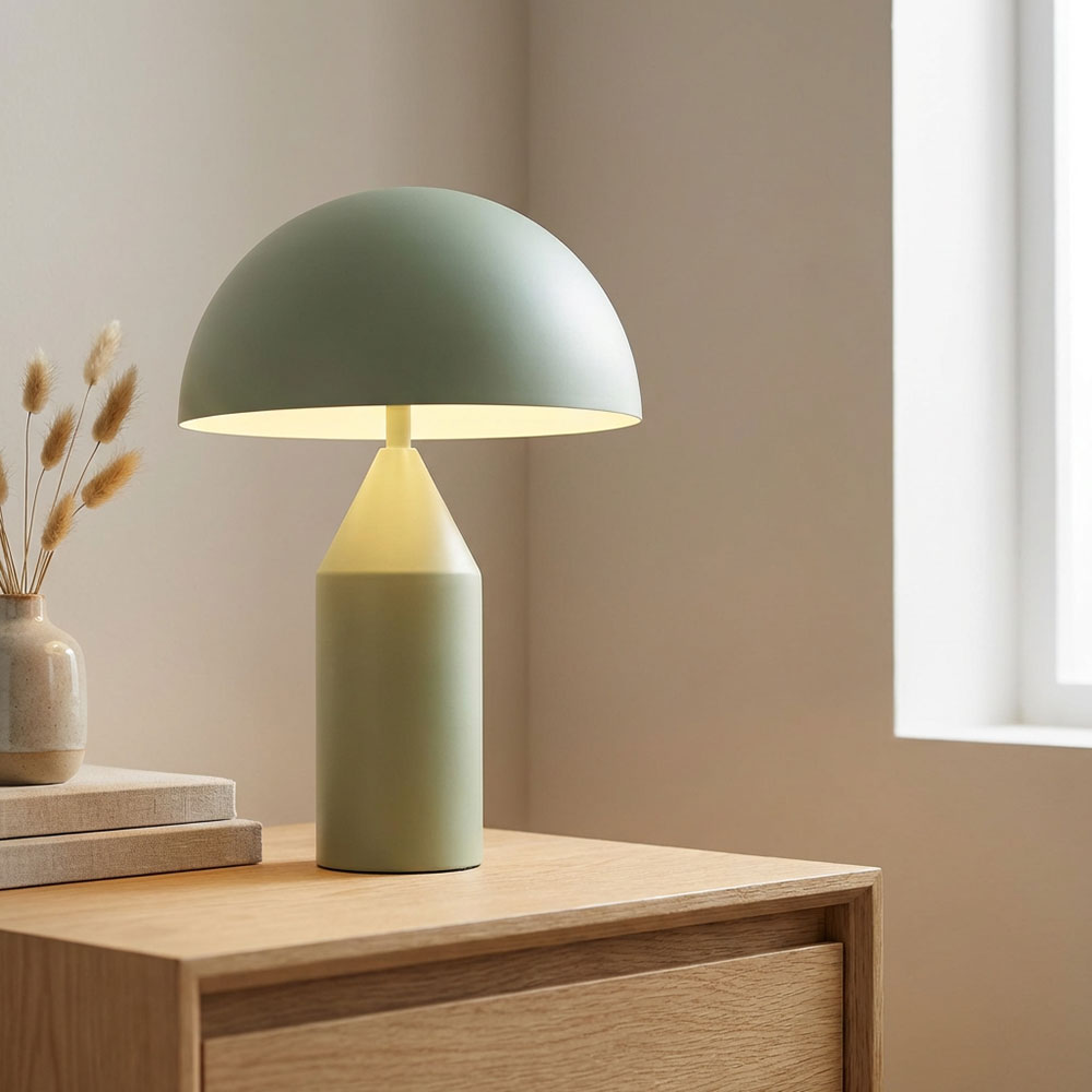 La lampada da tavolo con base cilindrica e paralume semicircolare è una soluzione di illuminazione moderna ed elegante per ogni stanza.