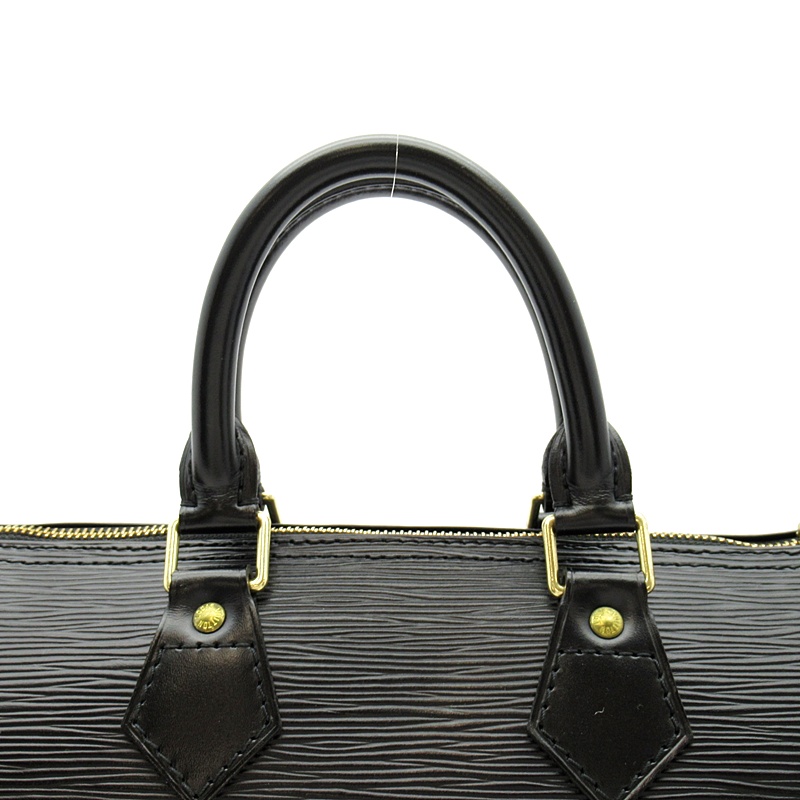 | There are some signs of use. There are some scuffs on the corners. There are some cracks on the handle edge. There is some blue rust on the metal. There are some scuffs and stains on the inside. |