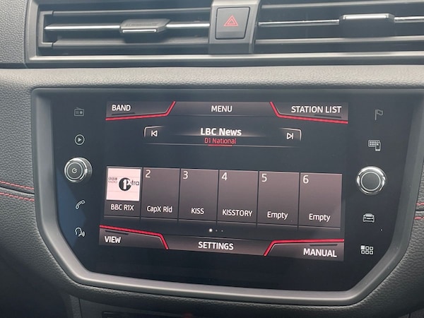 ..Driver Convenience,Cruise Control with Speed Limiter,Rear Parking Sensors,RPM Counter,SEAT Drive Profile,Tiredness Recognition System,Tyre Pressure Monitoring SystemEntertainment,AM-FM Radio with DAB - Digital Audio Broadcasting,Bluetooth Audio Streaming with Handsfree System,Connectivity Pack Plus,Full Link Smartphone Integration,SEAT Connect - Safety - Service - Remote - Online,Six SpeakersExterior,17in Alloy Wheels - Dynamic,Chrome Roof Rails and Window Surround,Contrast Roof,Dark Tinted Rear Windows,Electrically Adjustable Folding and Heated Door Mirrors,Emergency Tyre Repair Kit,Front and Rear Electric Windows,Front Grille Frame in Chrome,Locking Wheel Bolts,Protective Side Moulding,Roof Coloured Door Mirrors,Twin Exhaust PipesInterior,Aircare Filter,Auto Dimming Rear View Mirror,Black Interior Roof,Double Boot Floor,Dual Zone Climate Control,Front Courtesy Light with Front Reading Lights,Front Sports Seats,Height Adjustable Front Seats,Interior Ambient Light,Interior Chrome Pack,Interior Light in Footwell - Centre Console and Door Panel,Leatherette Dashboard,Perforated Leather Flat-Bottomed Steering Wheel with Red Stitching and FR Logo with Leather Gear Knob and Handbrake,Rain Sensing Wipers,Split Folding Rear Seats - 60-40,Two Front and Three Rear Height-Adjustable HeadrestsEntertainment,AM-FM Radio with DAB - Digital Audio Broadcasting,Bluetooth Audio Streaming with Handsfree System,Connectivity Pack Plus,Full Link Smartphone Integration,SEAT Connect - Safety - Service - Remote - Online,Six Speakers