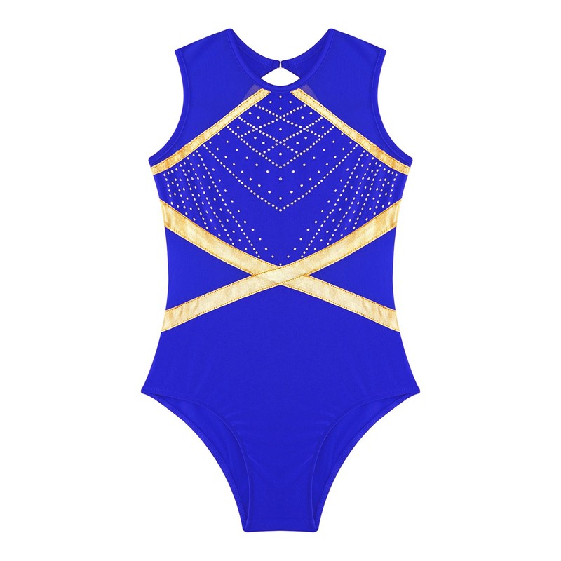 UK Girls Glittery Rhinestones Gymnastics Leotard Keyhole Back Patchwork Bodysuit