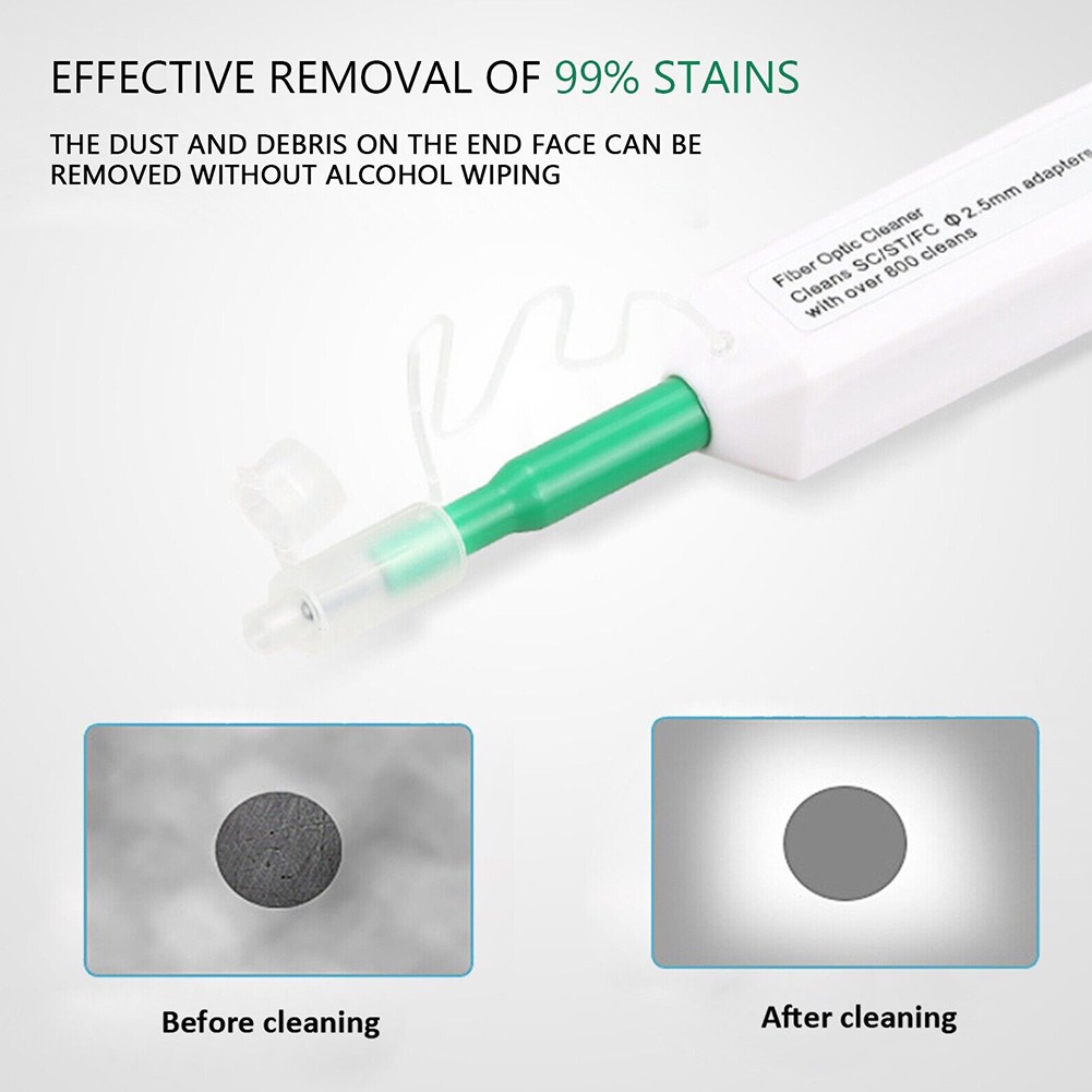 Fiber Optic Connector Cleaners are designed to efficiently and quickly clean connector end faces, including unmated patch cords and pass-through adapters. It cleans the ferrule end face, removing , oil and other debris without scratching or scratching the end face. It is very easy to use and works with for SC/ST/FC connectors.