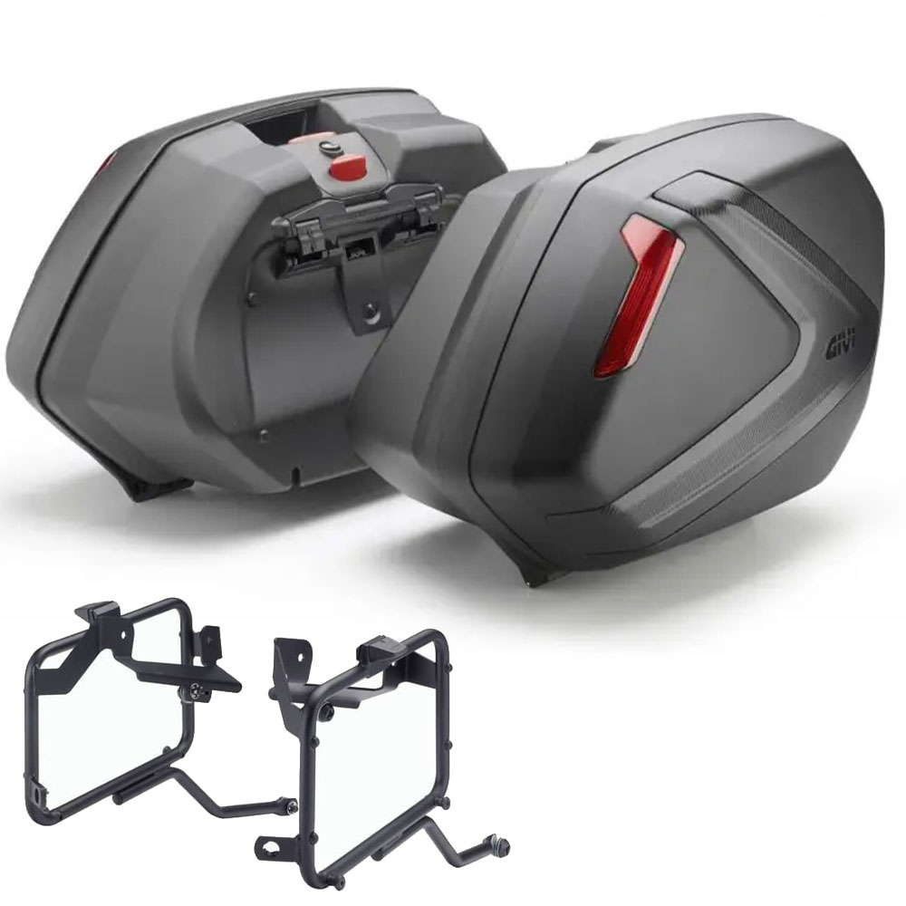 PAAR SEITENKOFFER V37NN + SPEZIELLER RAHMEN FÜR DAS BETREFFENDE MOTORRAD + SPEZIFISCHER BEFESTIGUNGSTEIL FÜR DIE MONTAGE