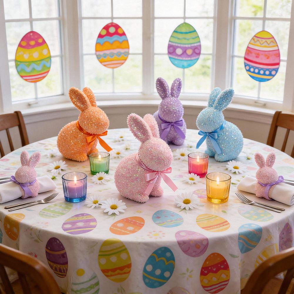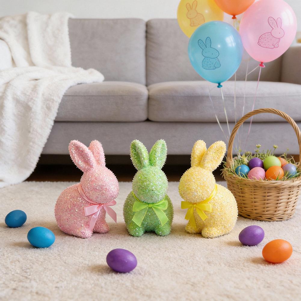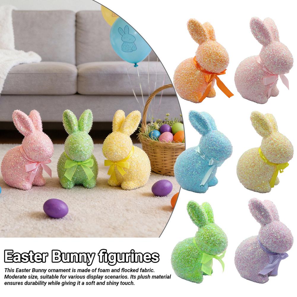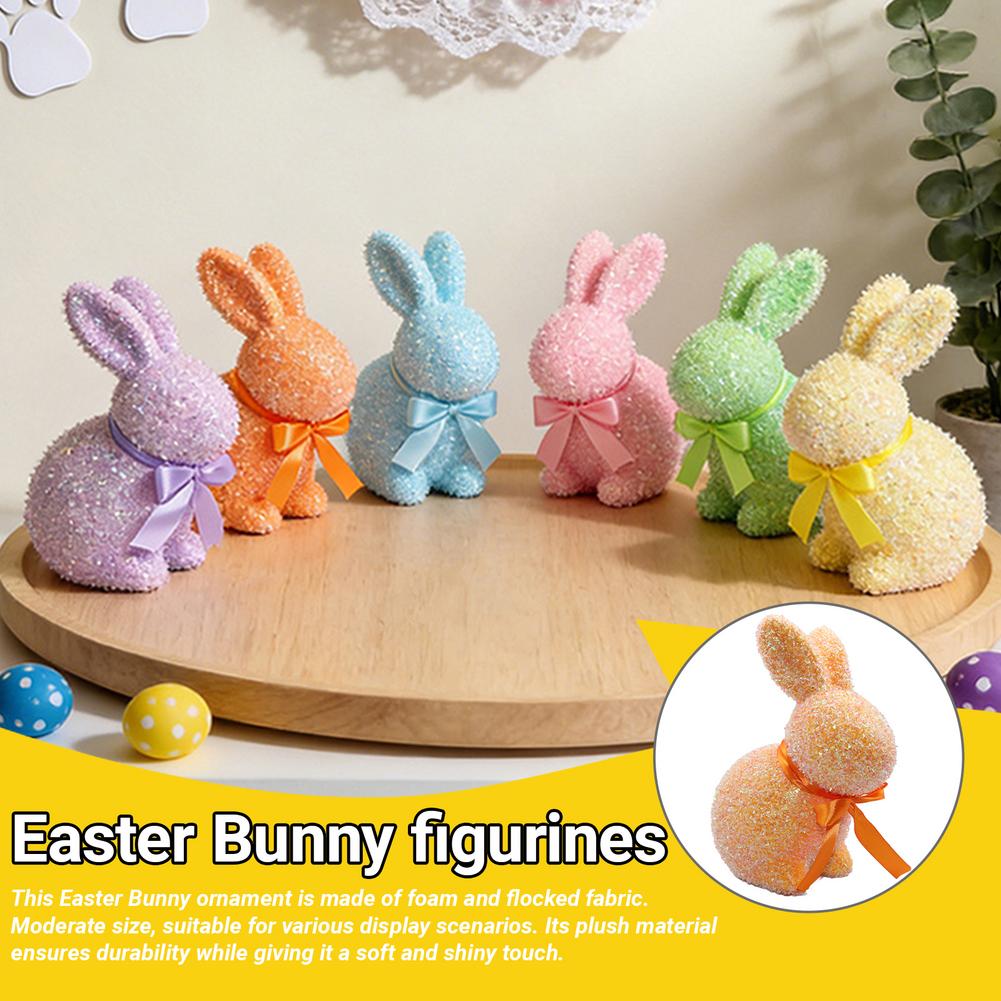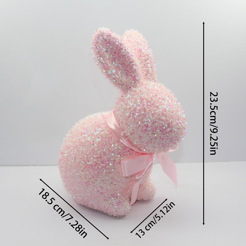 4. Enhance the festive mood: The shimmering flocking and vibrant colors make this bunny ornament truly eye-catching. It can instantly elevate the decor of Easter or springtime, adding a touch of cuteness and sparkle to any space, whether it's the living room, dining table, or party venue.