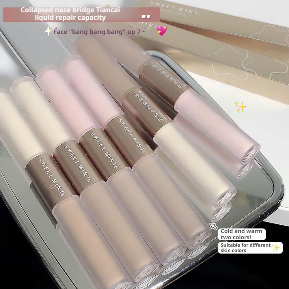 1. Double-head design, one-touch switching between highlight and contour, easily brightens the skin tone and modifies the facial contour to create a three-dimensional makeup effect.