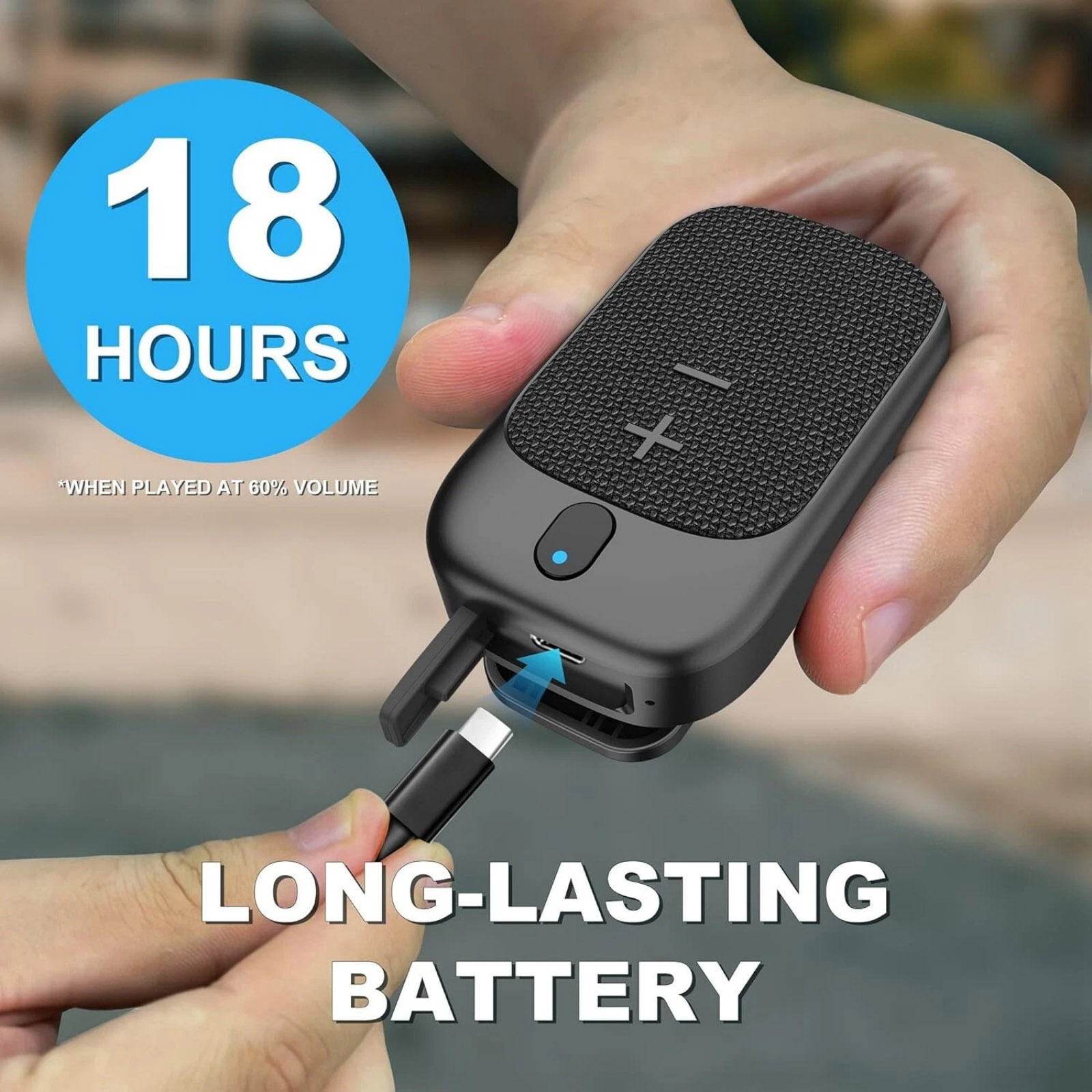 Pocket-Sized & Lightweight: Small and easy to carry, this clip-on Bluetooth speaker delivers great sound without the bulk. Perfect for music on the go.