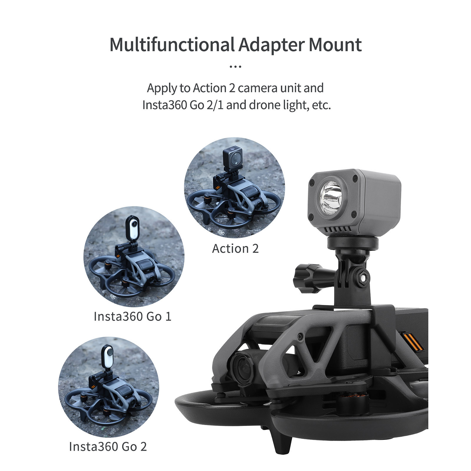 Multi-functional expansion: suitable for Action 2, for Insta360 Go1, for Insta360 Go2 sports camera series, fill light, etc