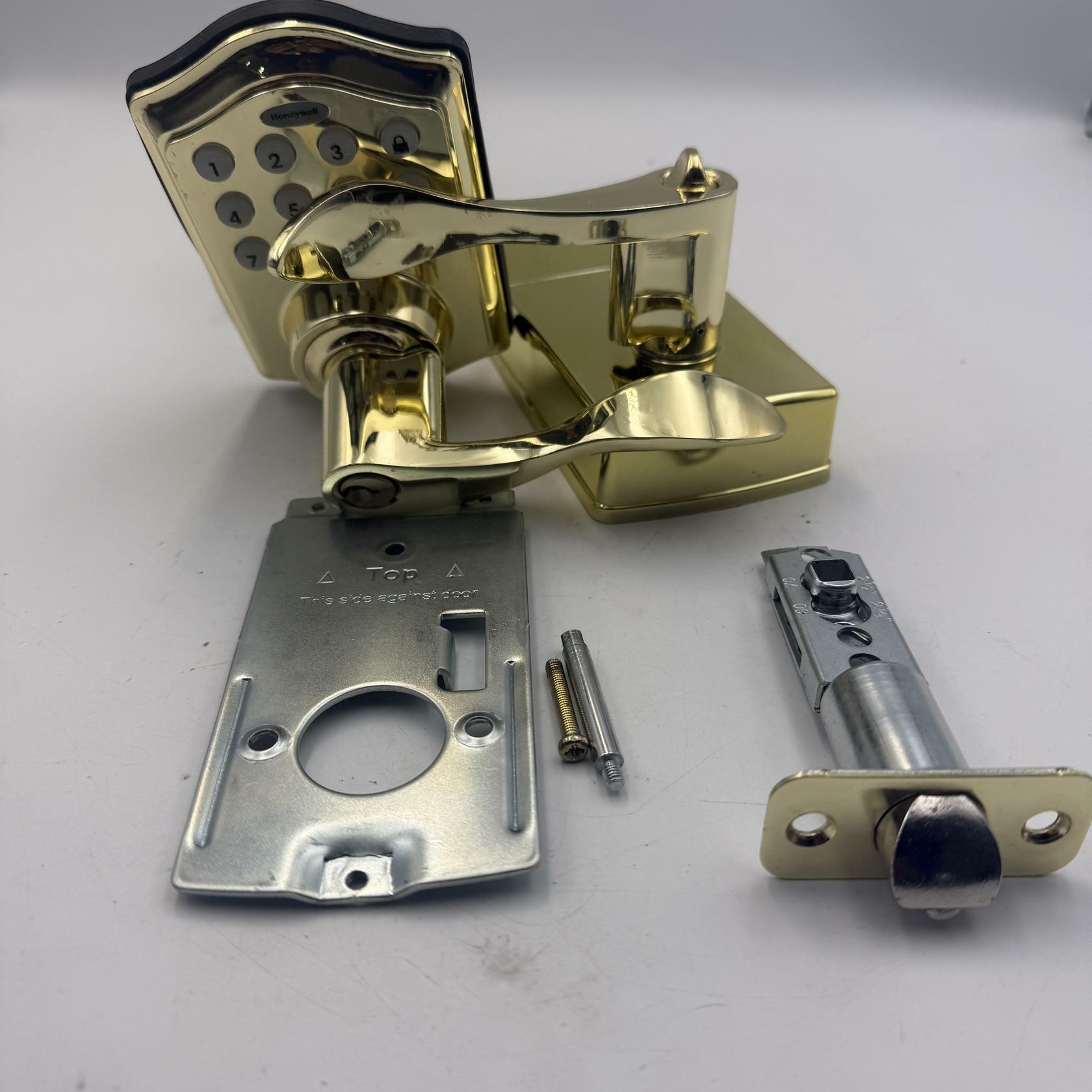 Honeywell Safes & Door Locks - Keyless Entry Lever Door Lock Handle with Electronic Keypad - Easy to Install Front Door Lock with Code - 50 User Pin Codes - Polished Brass, 6.5 x 8.8 x 9 in - 8734001