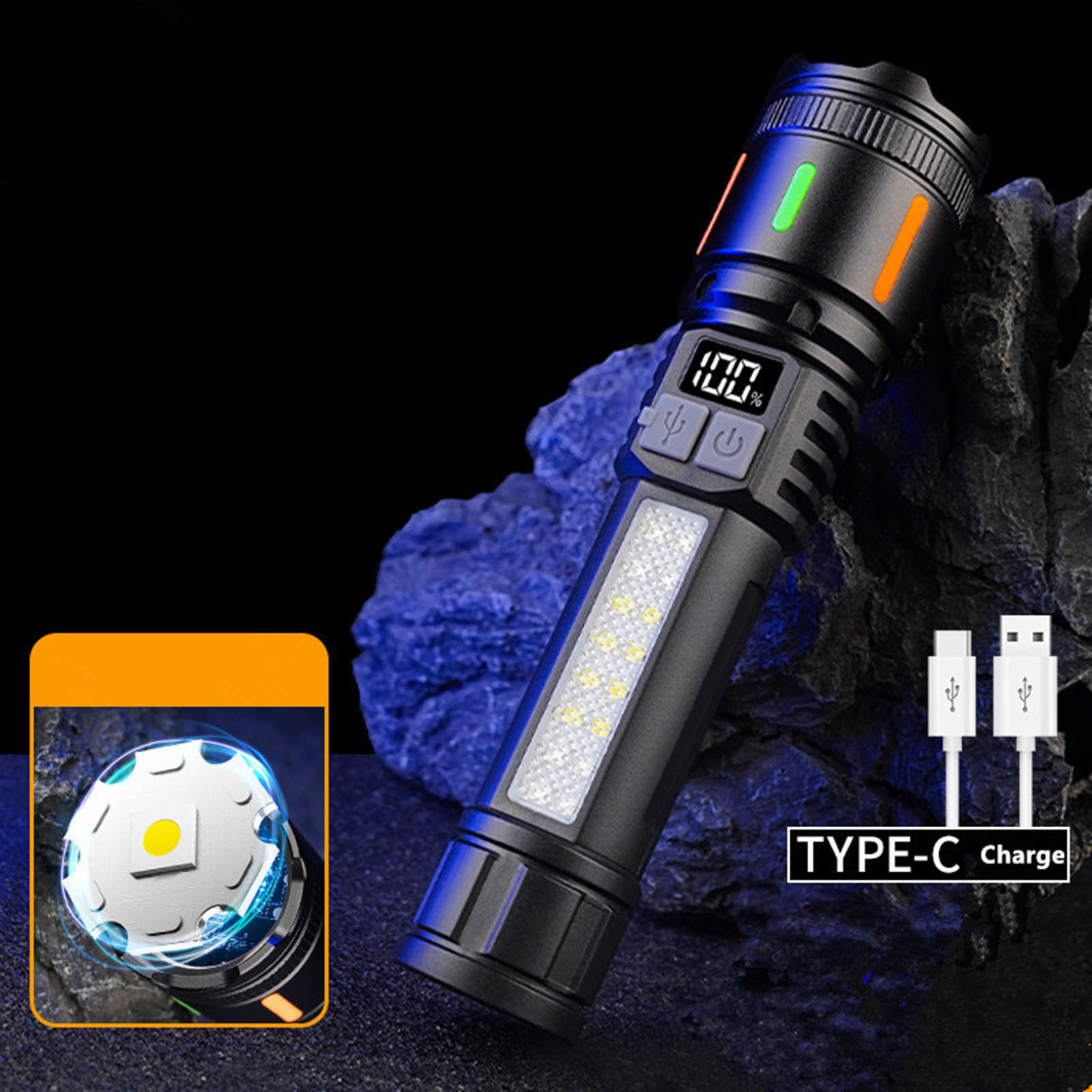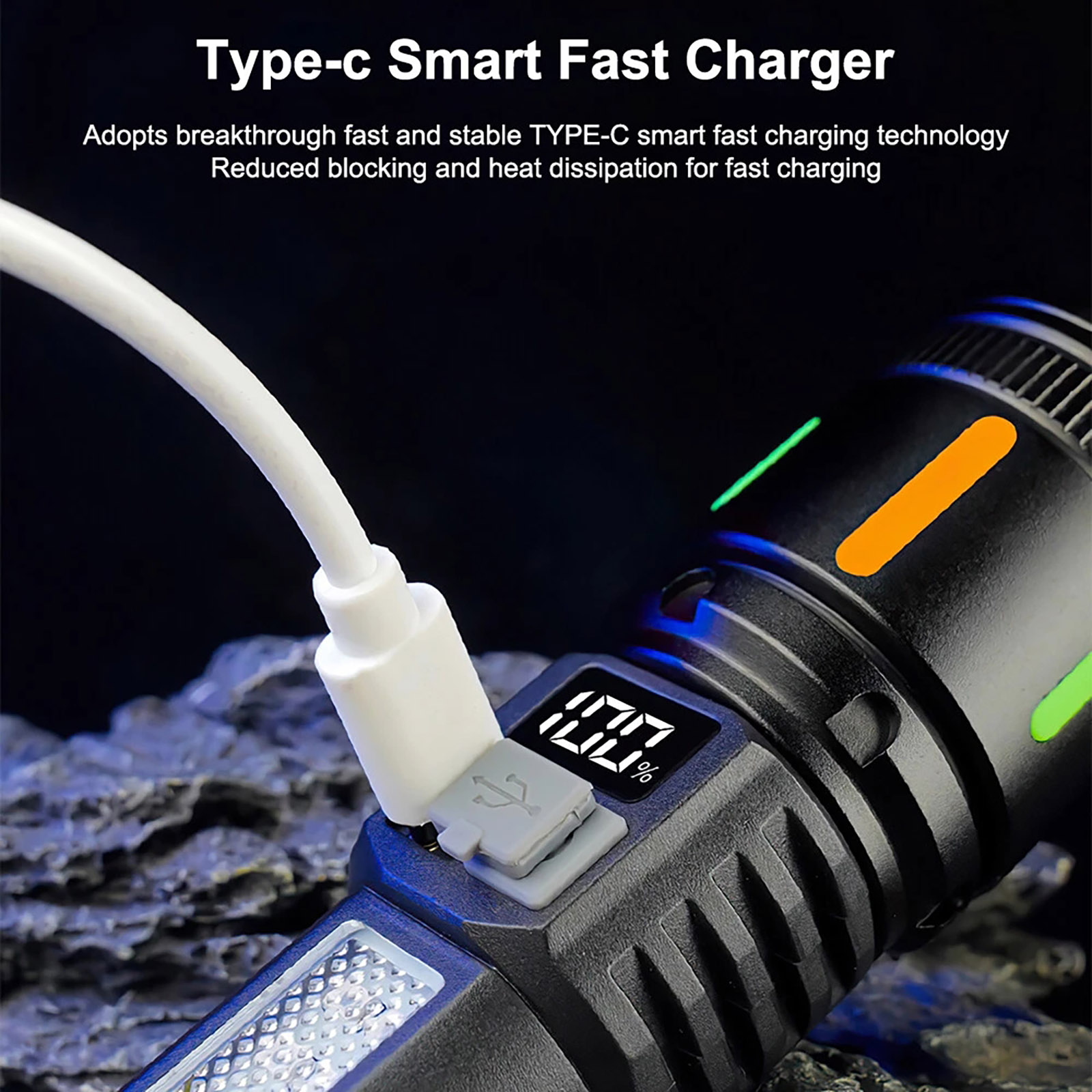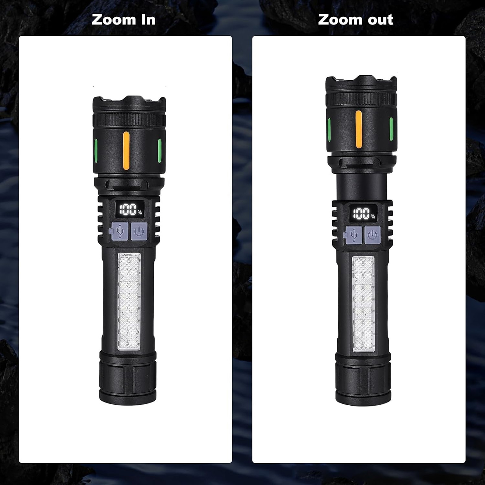 Rechargeable and Fast Charging: The rechargeable flashlight comes with rechargeable battery that can be used for 10 hours(Low mode). and Equipped with intelligent fast charging, compatible with all types of USB charging. The newly upgraded LCD power display is clearly visible, so you can always easily and accurately grasp the remaining power of the brightest flashlight.