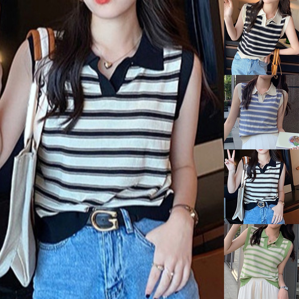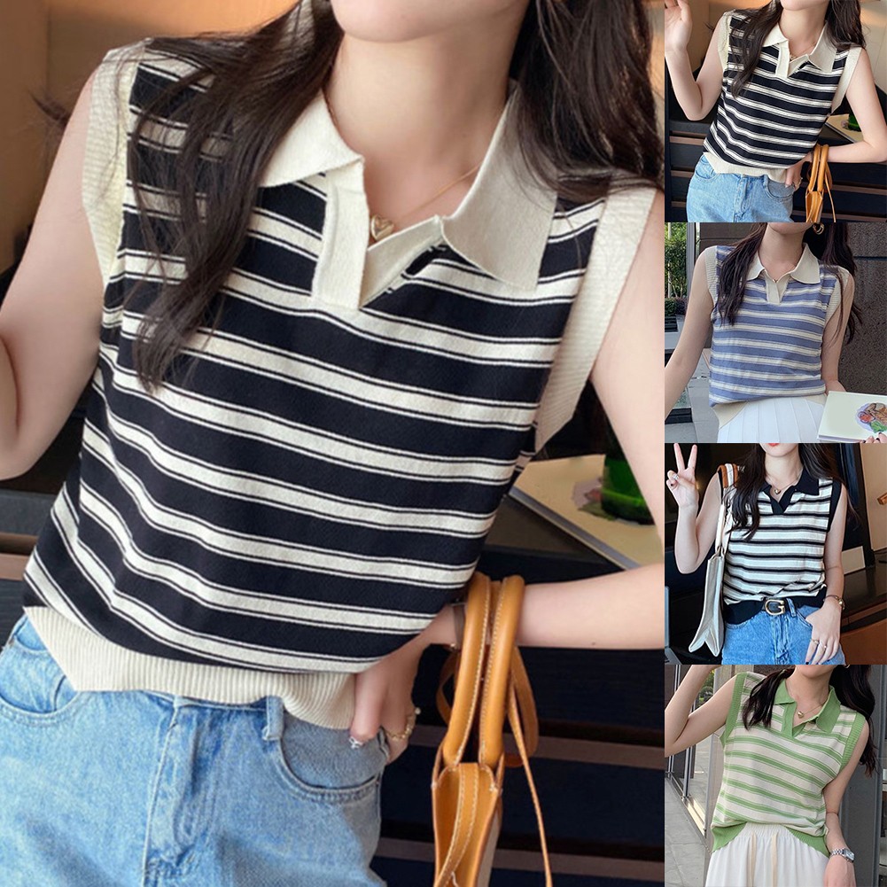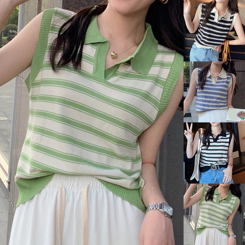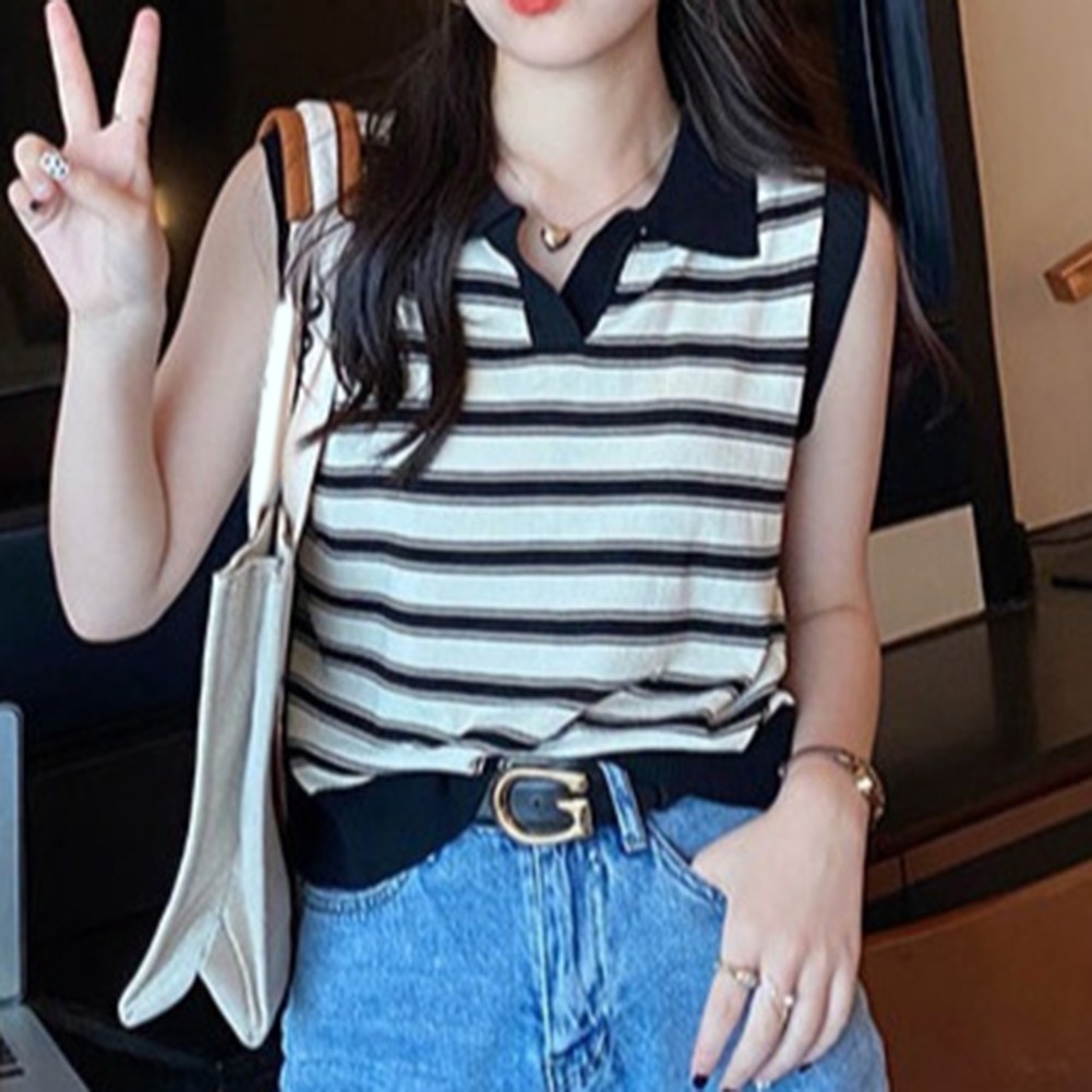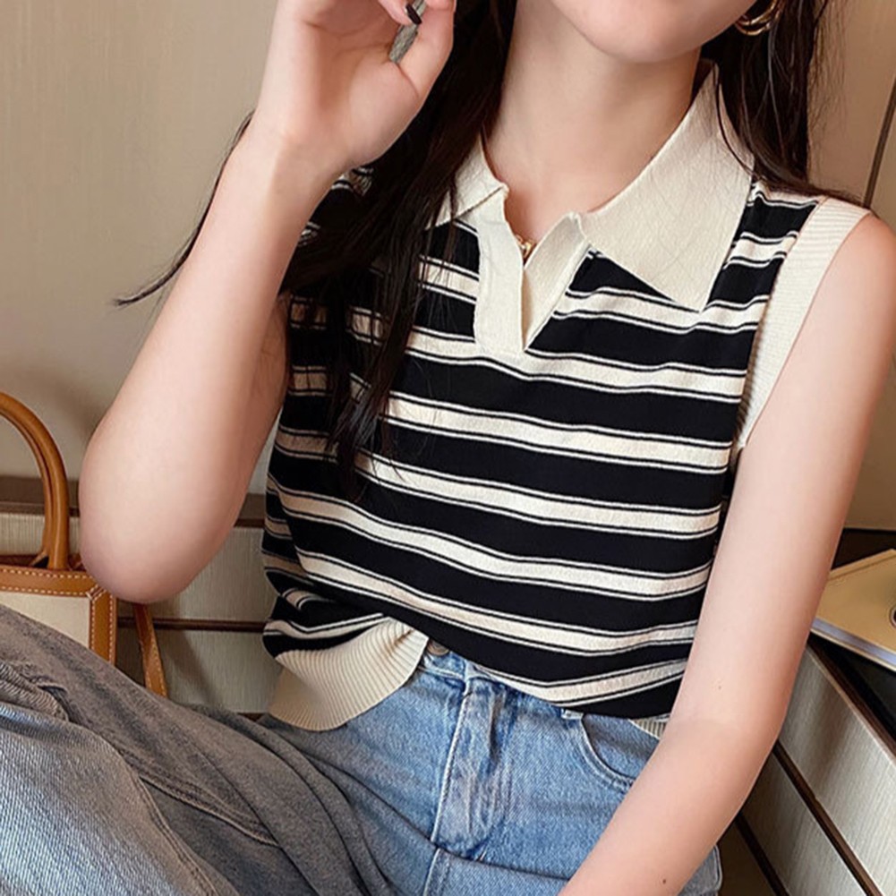 * Caractéristiques de l'article : Veste féminine sans manches, slim, à rayures de couleur contrastée, col cranté, débardeur mode et décontracté d'été