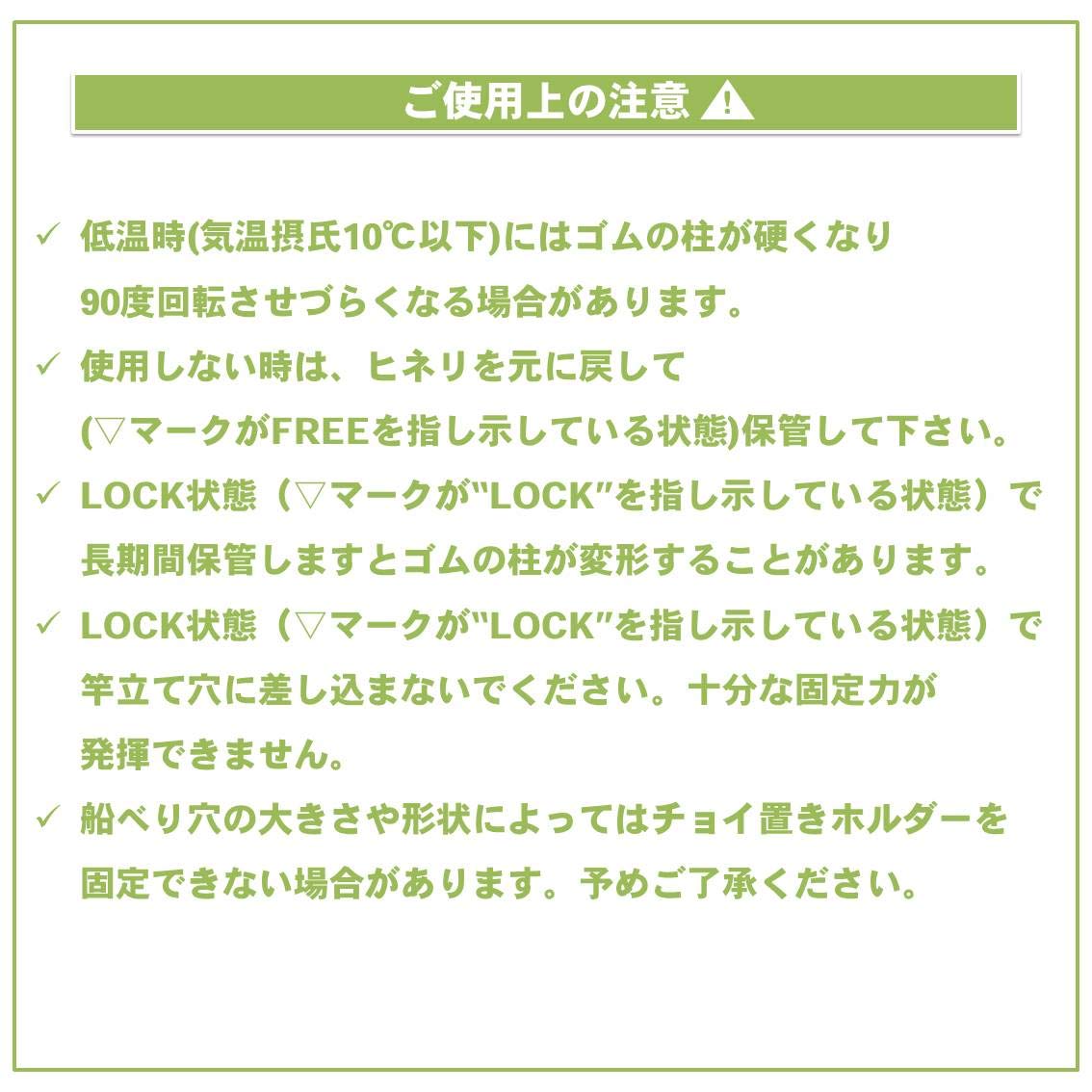 ●If you twist the rod hook 90 degrees, the part inserted into the gunwale hole will deform, increasing the fixing force and preventing it from falling off. (Rotate 90 degrees) ●Depending on the size and shape of the gunwale hole, it may not be possible to fix the Choi holder. Thank you for your understanding.