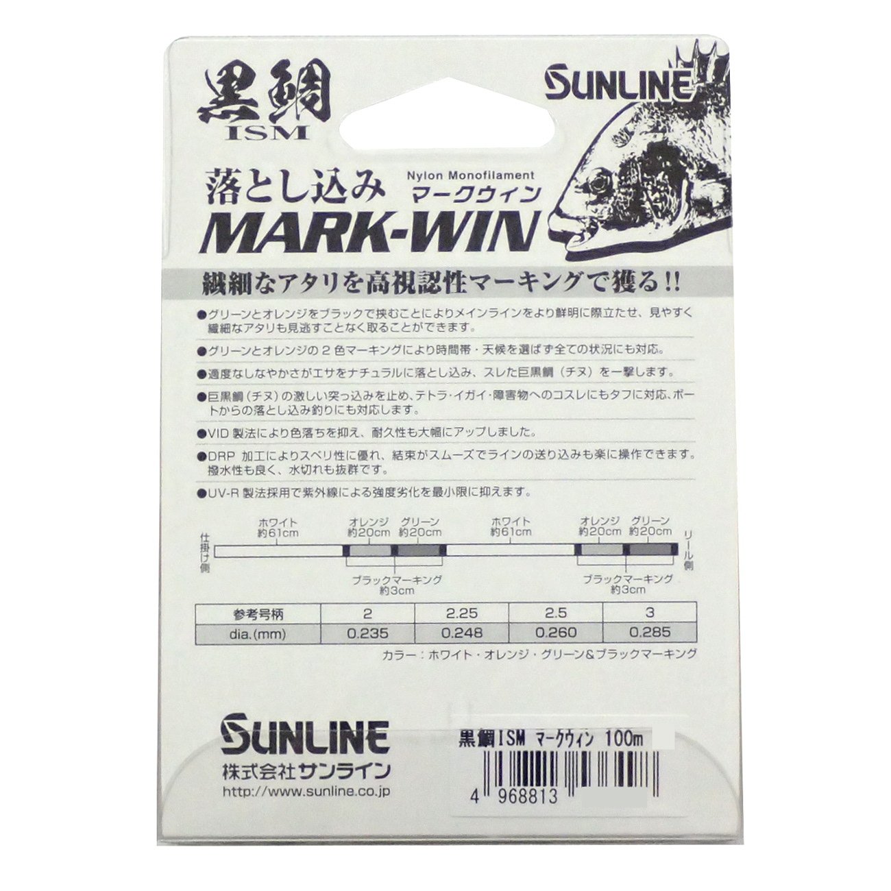 SUNLINE Nylon Line Black Sea Bream Ism Drop Mark Win 100m No. 2.25 White & Black