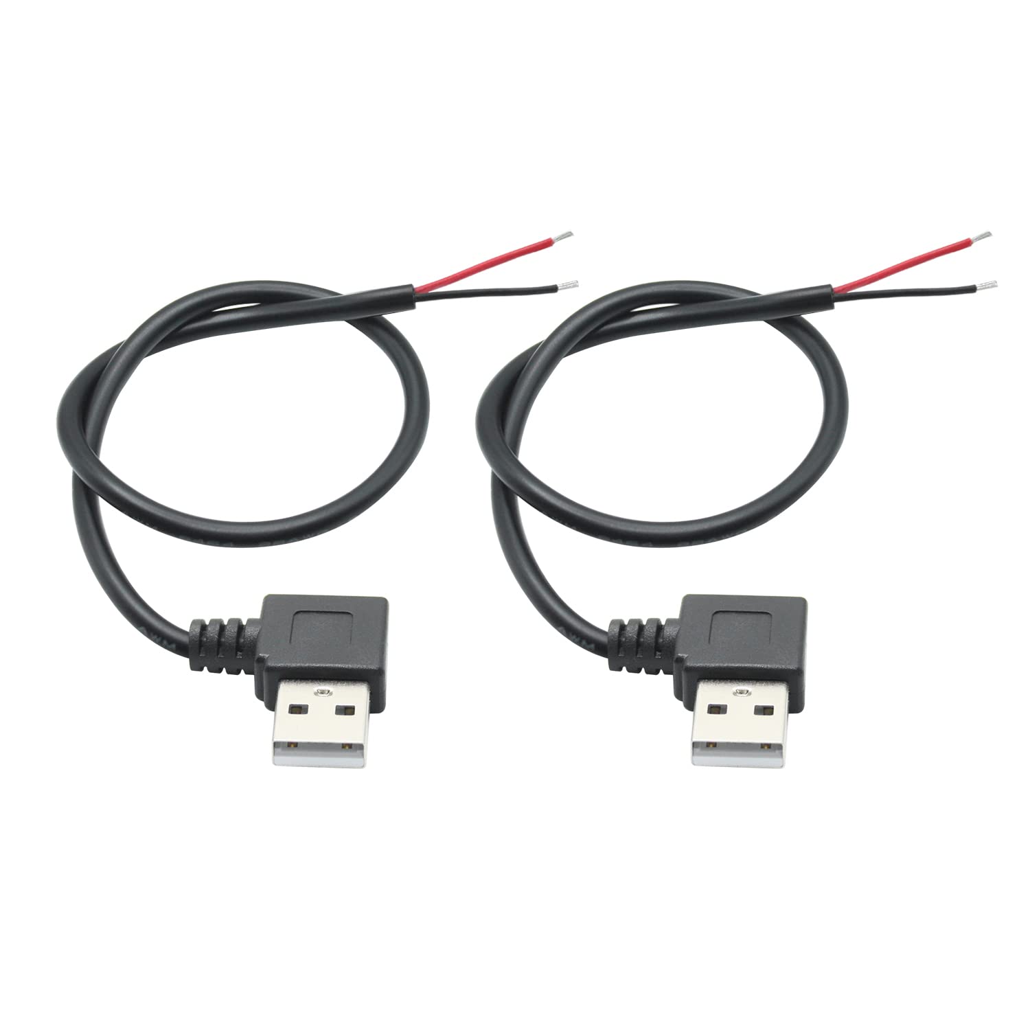 Maixbomr Short USB 2.0 Male Plug 2 Pin Bare Wire,90 Degree 30cm/11in Black