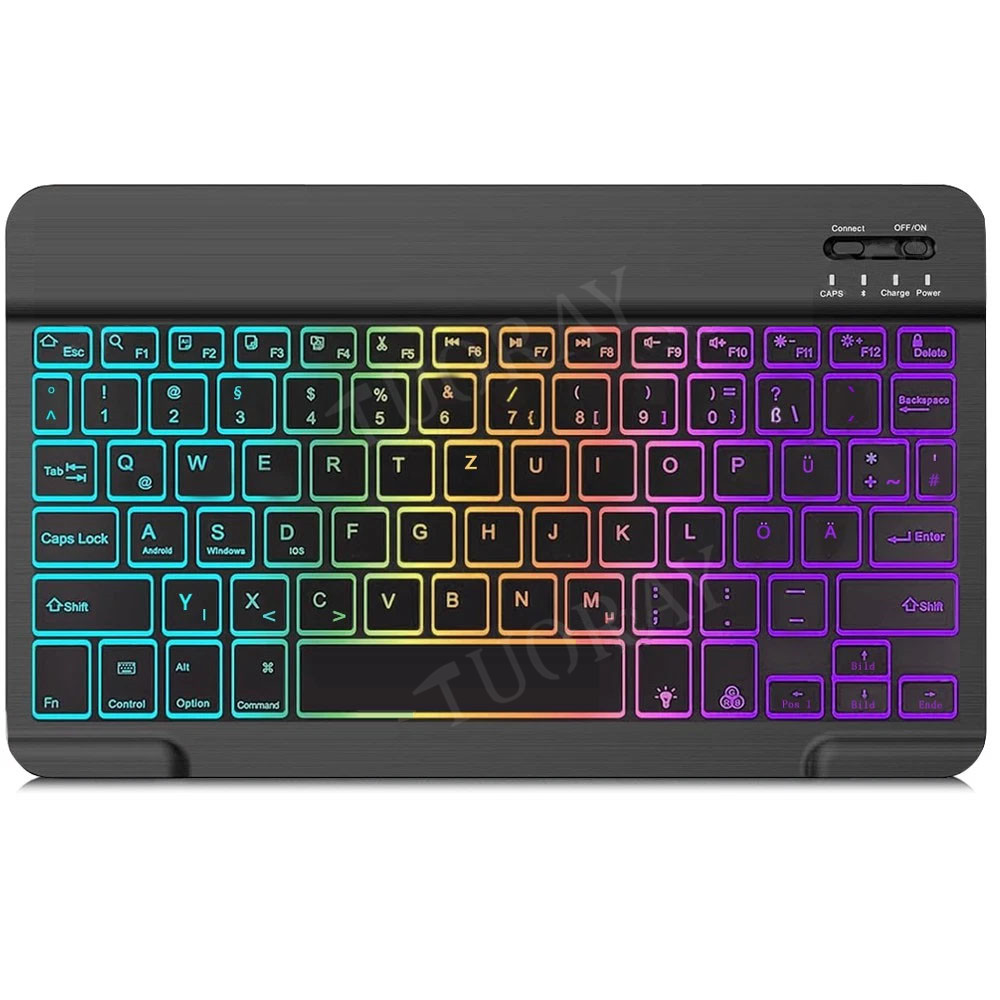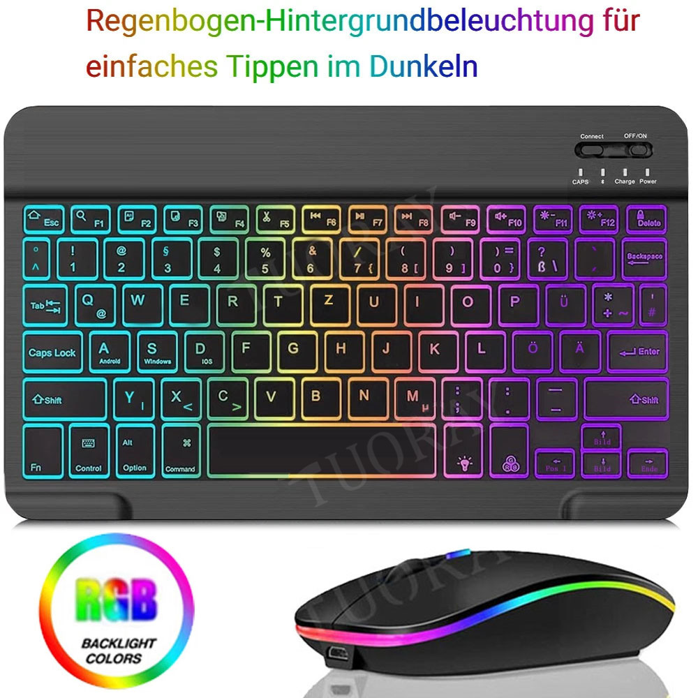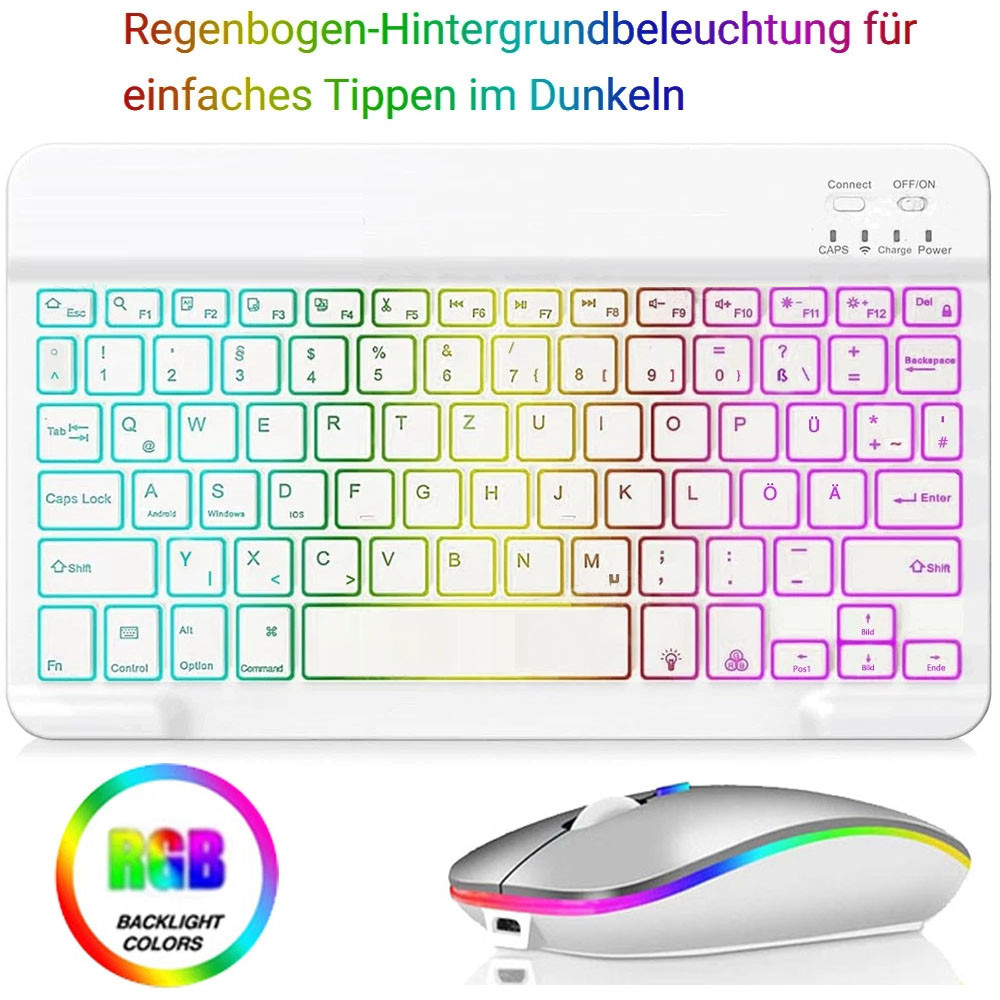 ⌨️【Upgrade Unique Backlight Color】- Nehmen Sie einzigartige 7 elegante LED-Regenbogen-Hintergrundbeleuchtung, Sie können sie frei wechseln. Mit 2 einstellbaren Helligkeitsstufen und automatischer Sleep-Funktion, um den Stromverbrauch zu maximieren. Es stellt sicher, dass die Tasten scharf, hell und leicht zu lesen in schwachem Licht sind, geben Sie mehr komfortable Tippen Erfahrung.