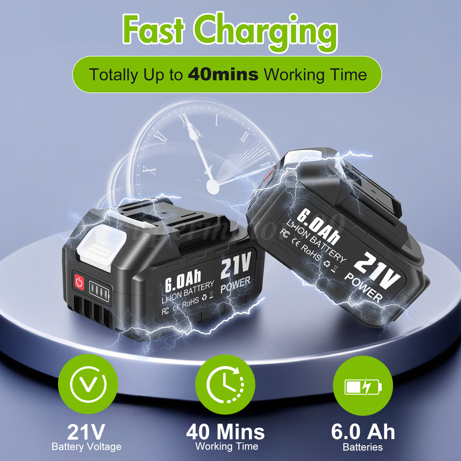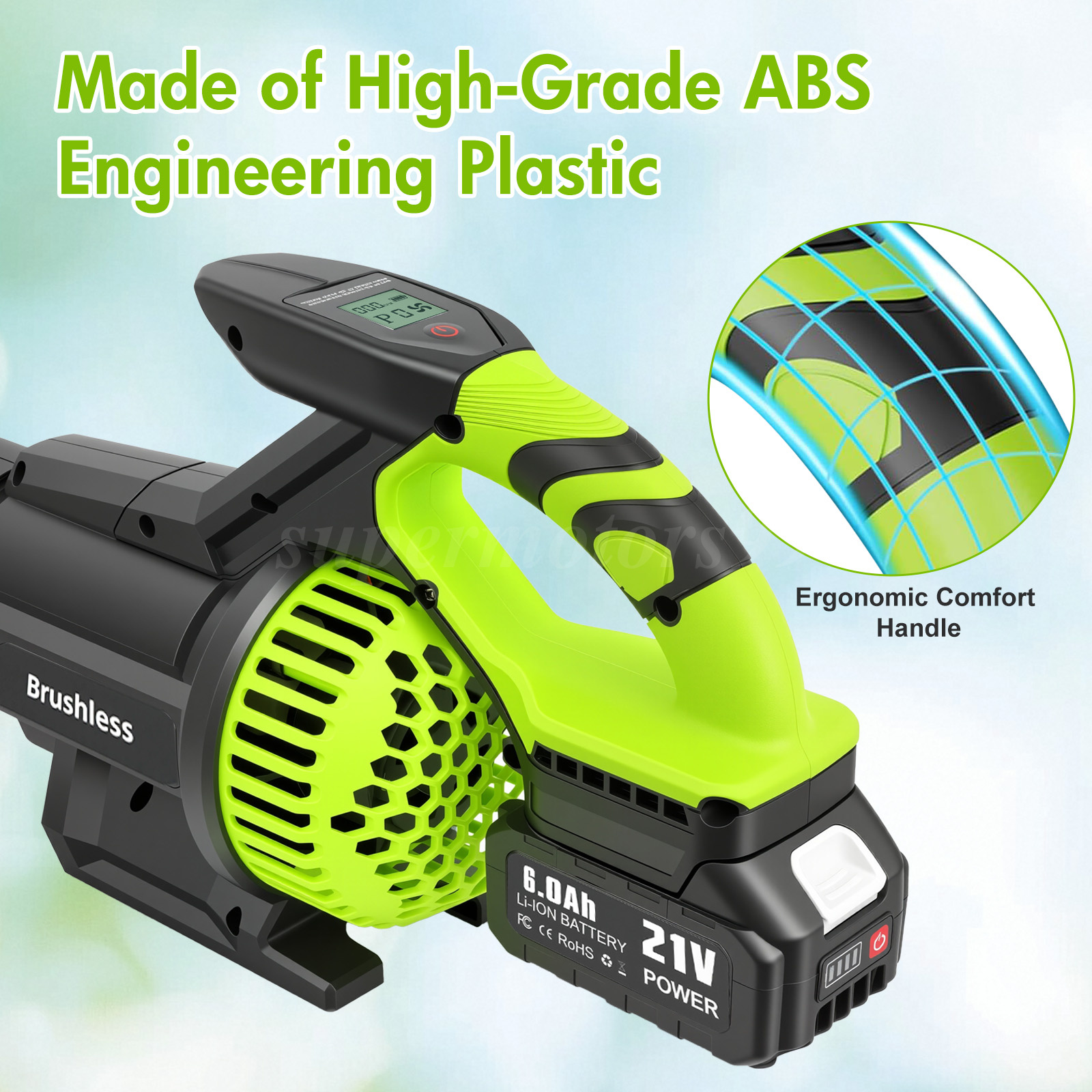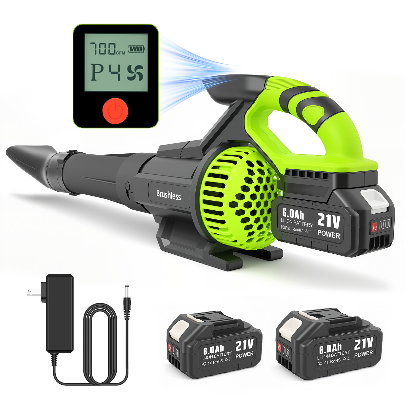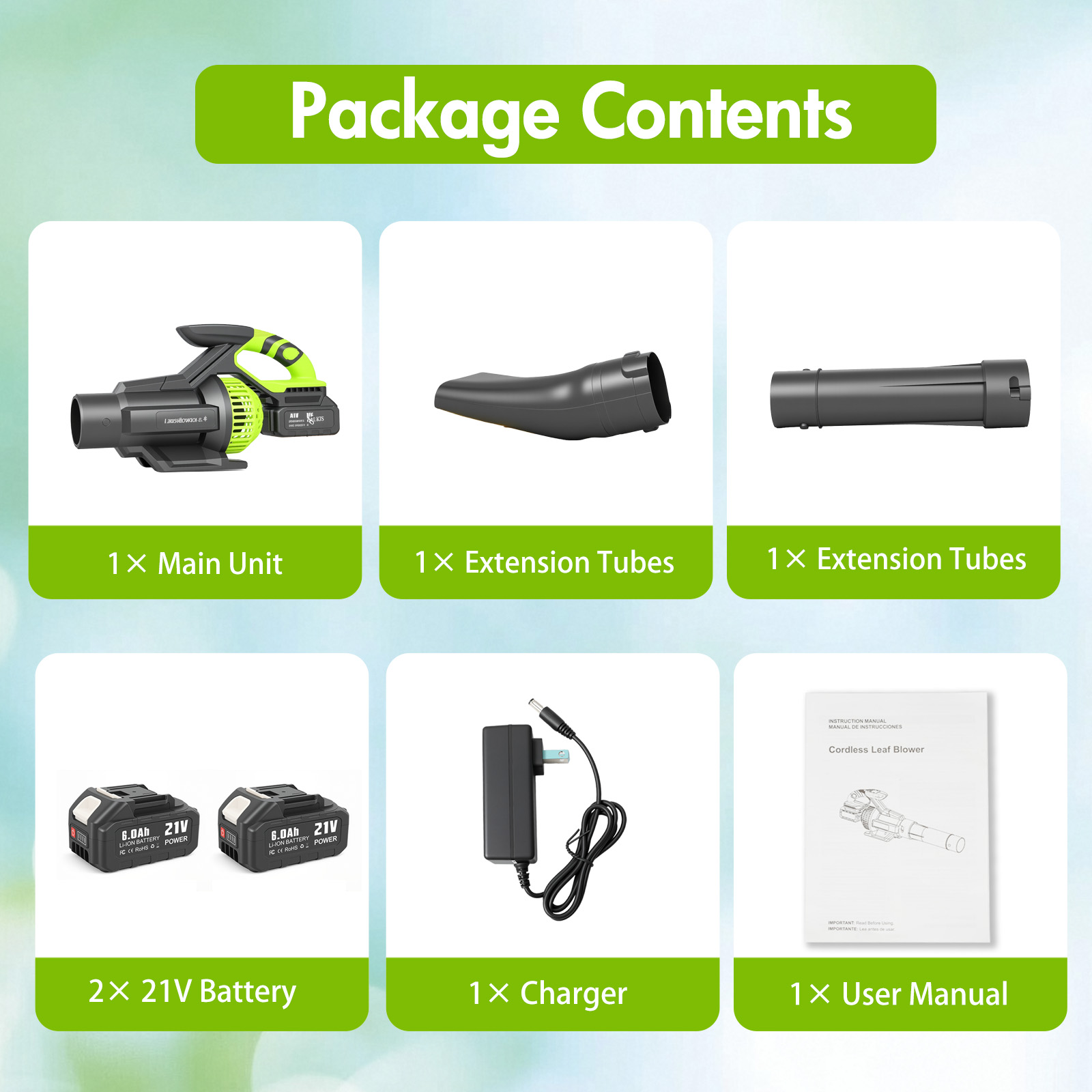 🔋【 Fast-Charging 2×6.0Ah Batteries for Extended Use 】– Equipped with two high-capacity 6.0Ah batteries that charge quickly and provide long-lasting runtime, allowing you to tackle large lawns or continuous projects without interruption. Perfect for all your battery powered leaf blower tasks.