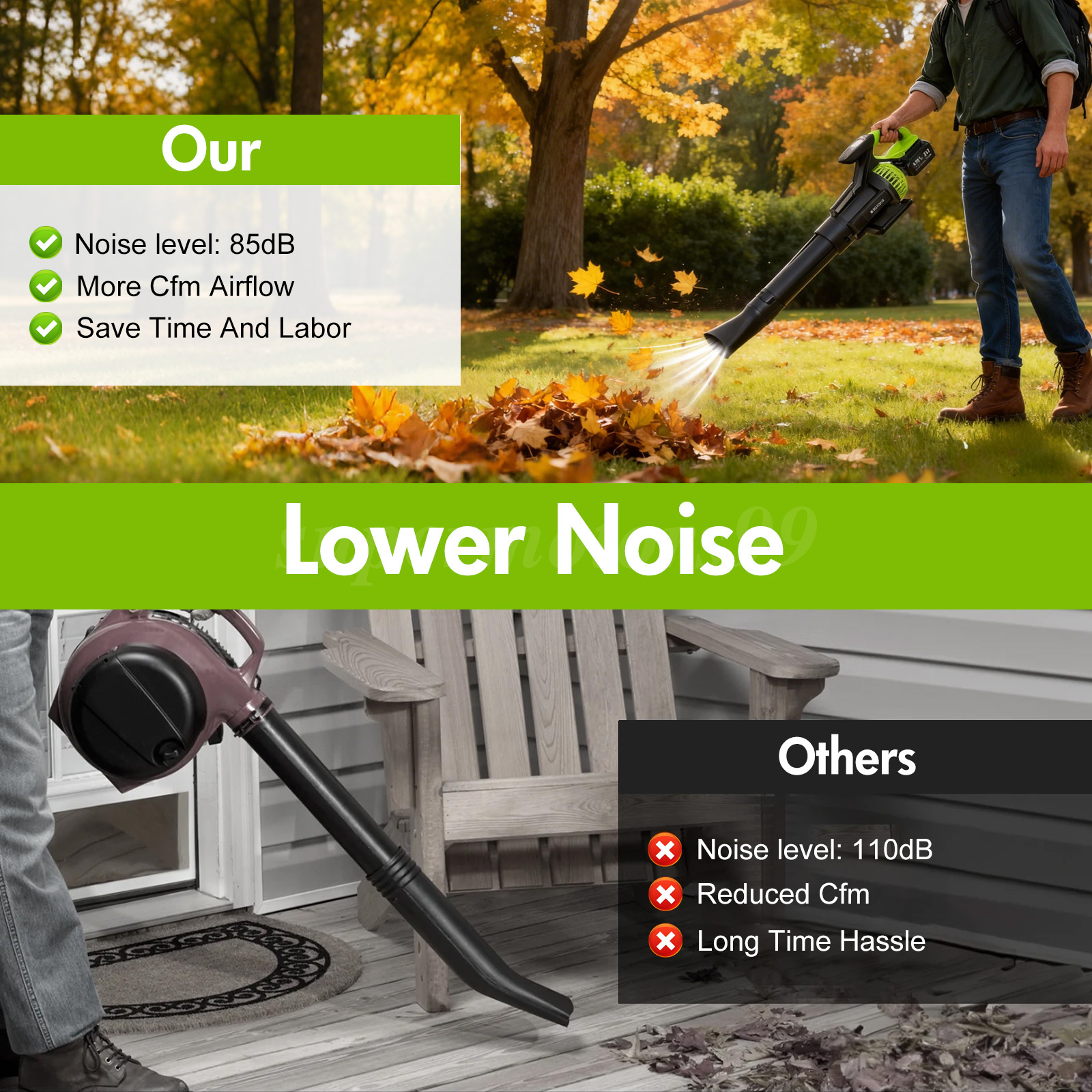 👍【Cordless Freedom with Lightweight Design】 – Say goodbye to tangled cords and limited mobility. This cordless blower offers the freedom to move anywhere around your property, and its lightweight build reduces fatigue during long sessions.