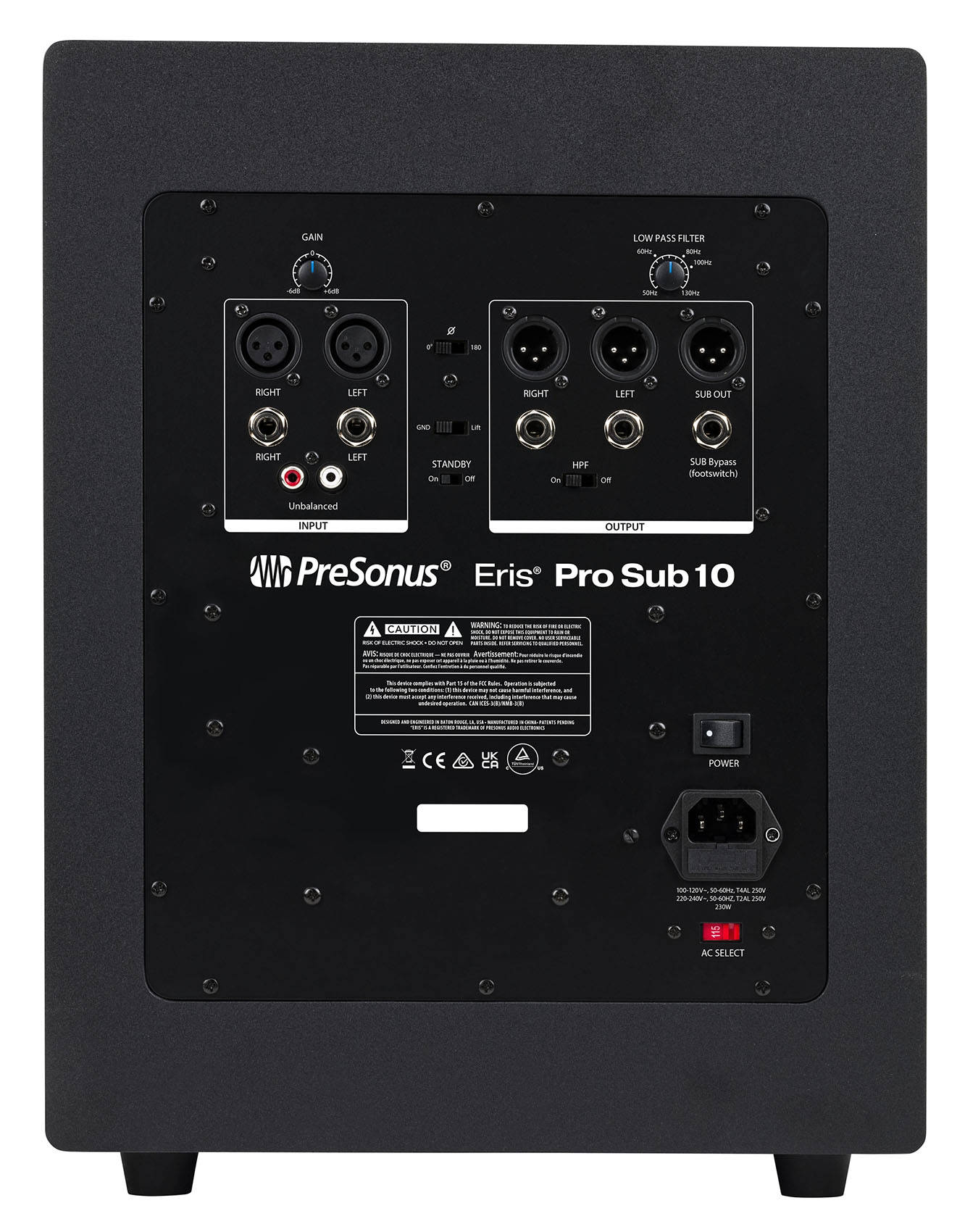 Intended for serious personal studios and professional music-production environments, the Eris Pro Sub 10 lets you take charge of the low-frequency foundation of your mix. An ideal companion to Eris® Pro and Eris Studio-series reference monitors, the Eris Pro Sub 10 compliments full-range monitors without overshadowing them and extends the reach of your full-range system’s low end with a more musical and natural approach. Extensive user controls include input gain, continuously variable lowpass filter for creating a seamless crossover transition, and a switchable highpass filter that removes content below 80 Hz from the full-range signal sent to the monitors.