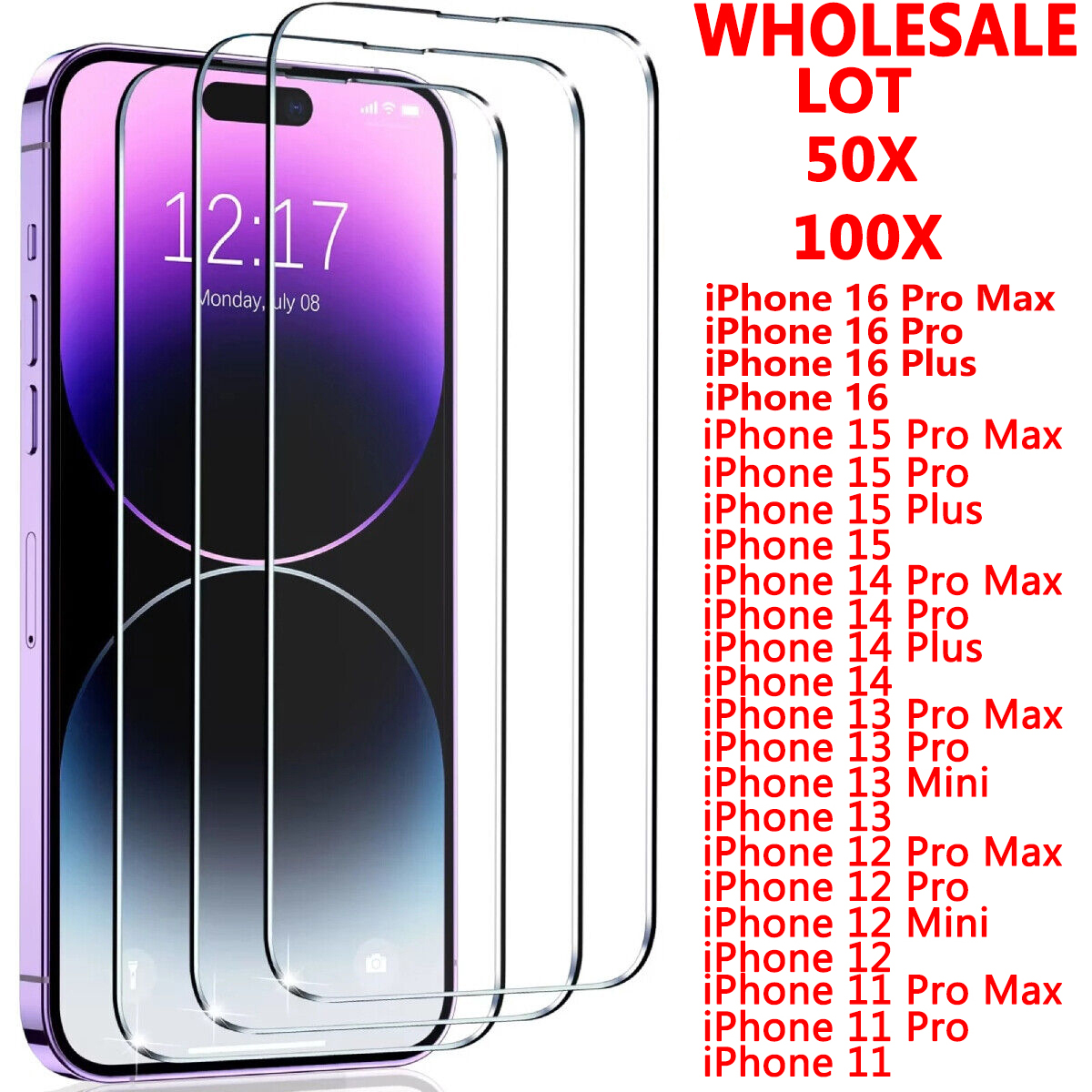 50/100X Tempered Glass Screen Protector