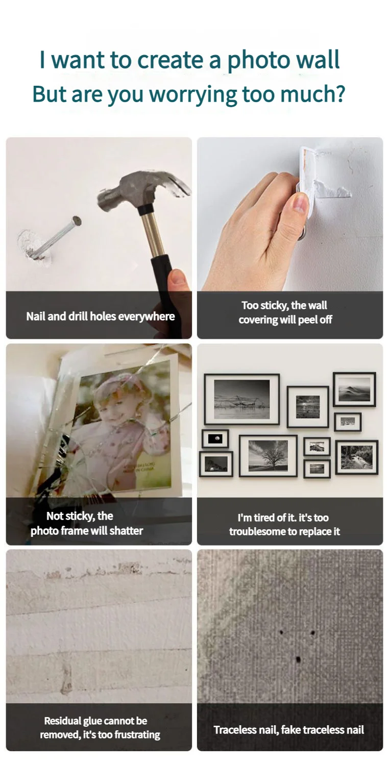 2. Easy to use: It can be easily used as a frame or decoration without any tools. You can hang photo frames, wall artworks, mirrors, wall clocks, signs, power strips and other home decorations without nails or hammers.