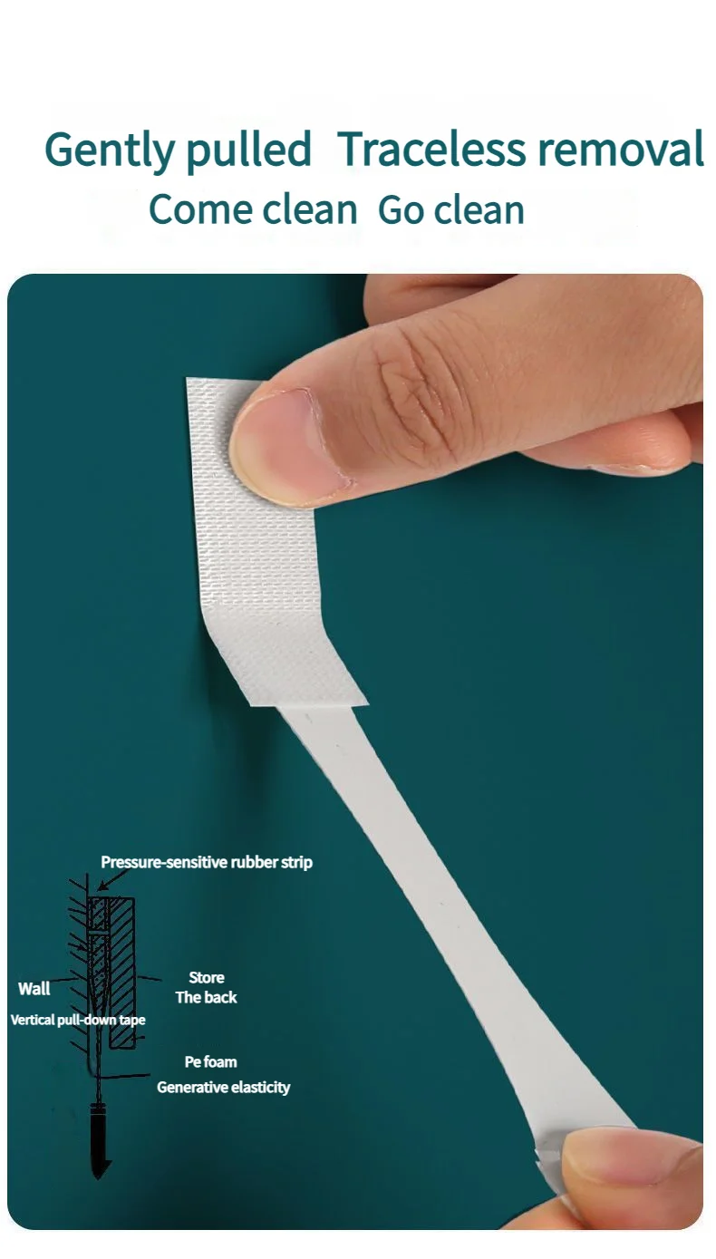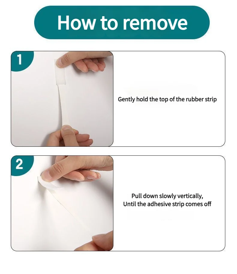 1. Undamaged hanging: Say goodbye to holes, marks or sticky residues on the wall. The undamaged suspension strip can be removed cleanly without leaving holes, marks or sticky residues on various surfaces.