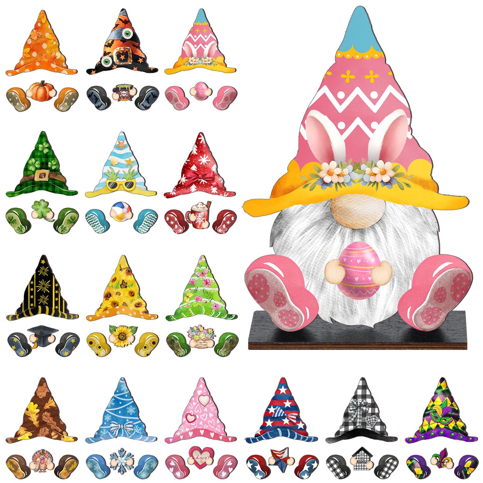 Blulu 34 Pcs Interchangeable Wooden Gnome Decor St. Patrick's Day Colorful